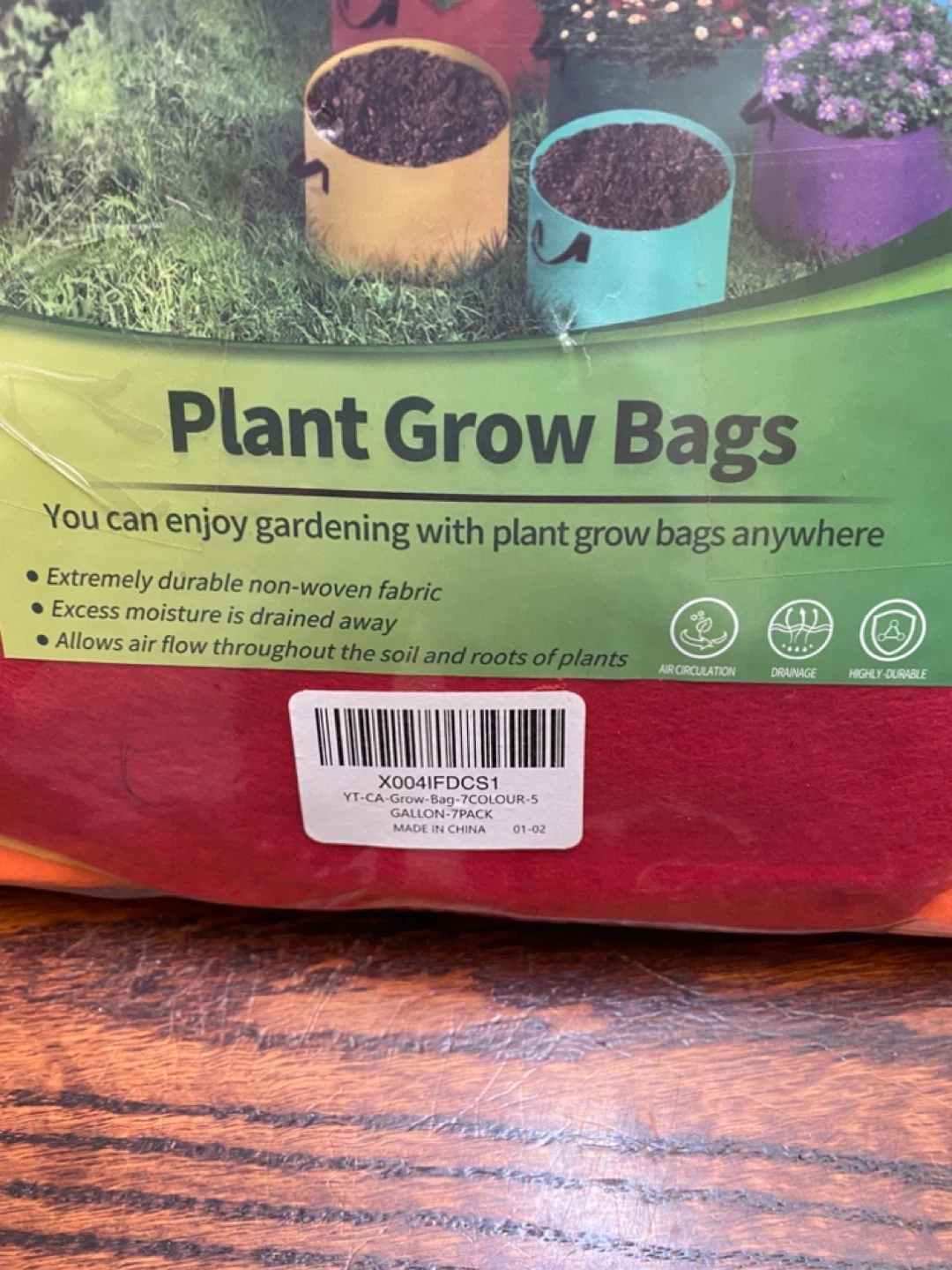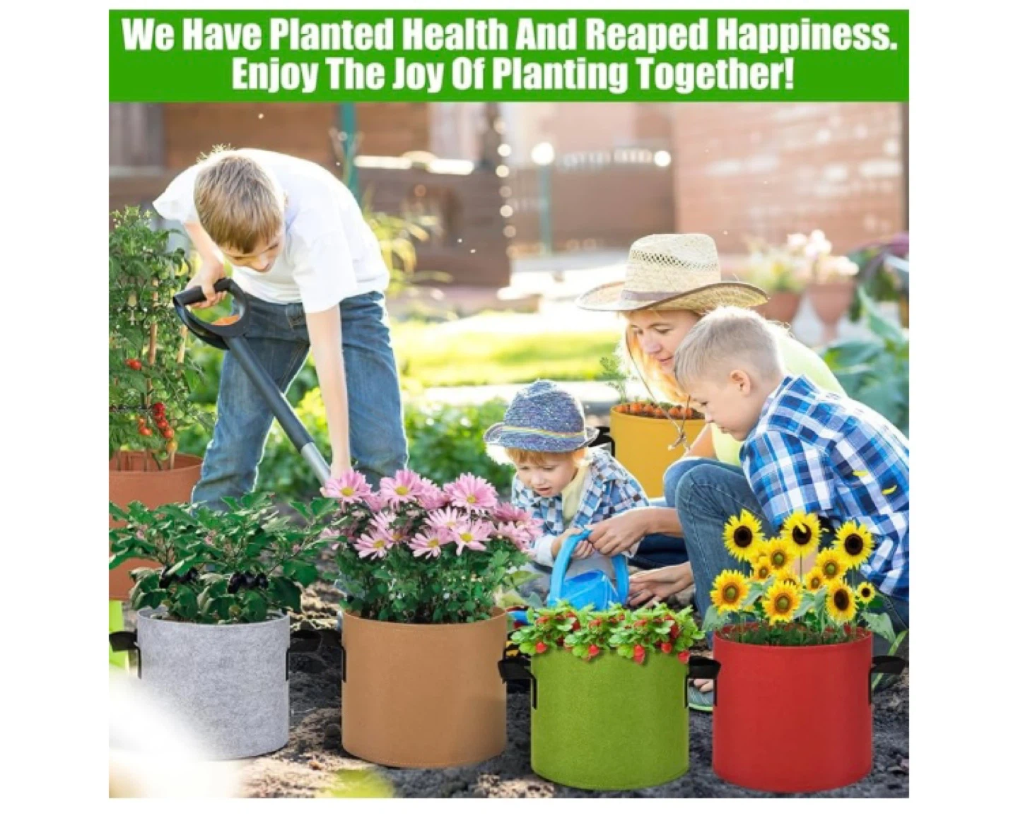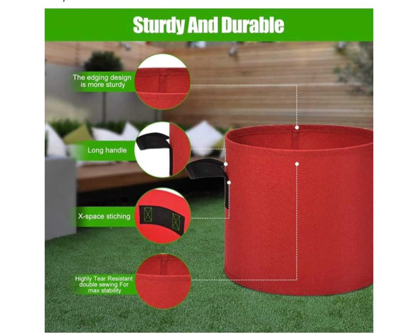 These grow bags are made from extremely durable non-woven fabric. They allow air circulation for healthy roots and excess moisture drains away. These are great for anyone looking to start gardening, even in small spaces!