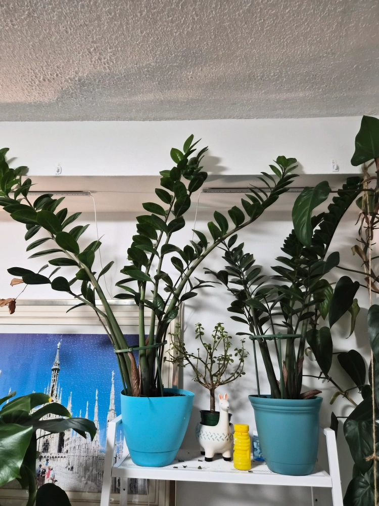 105Selling a healthy ZZ plant in a bright blue pot! It's a great, low-maintenance plant that's perfect for adding some greenery to your space 20 each or 30 for both very healthy zz plantd