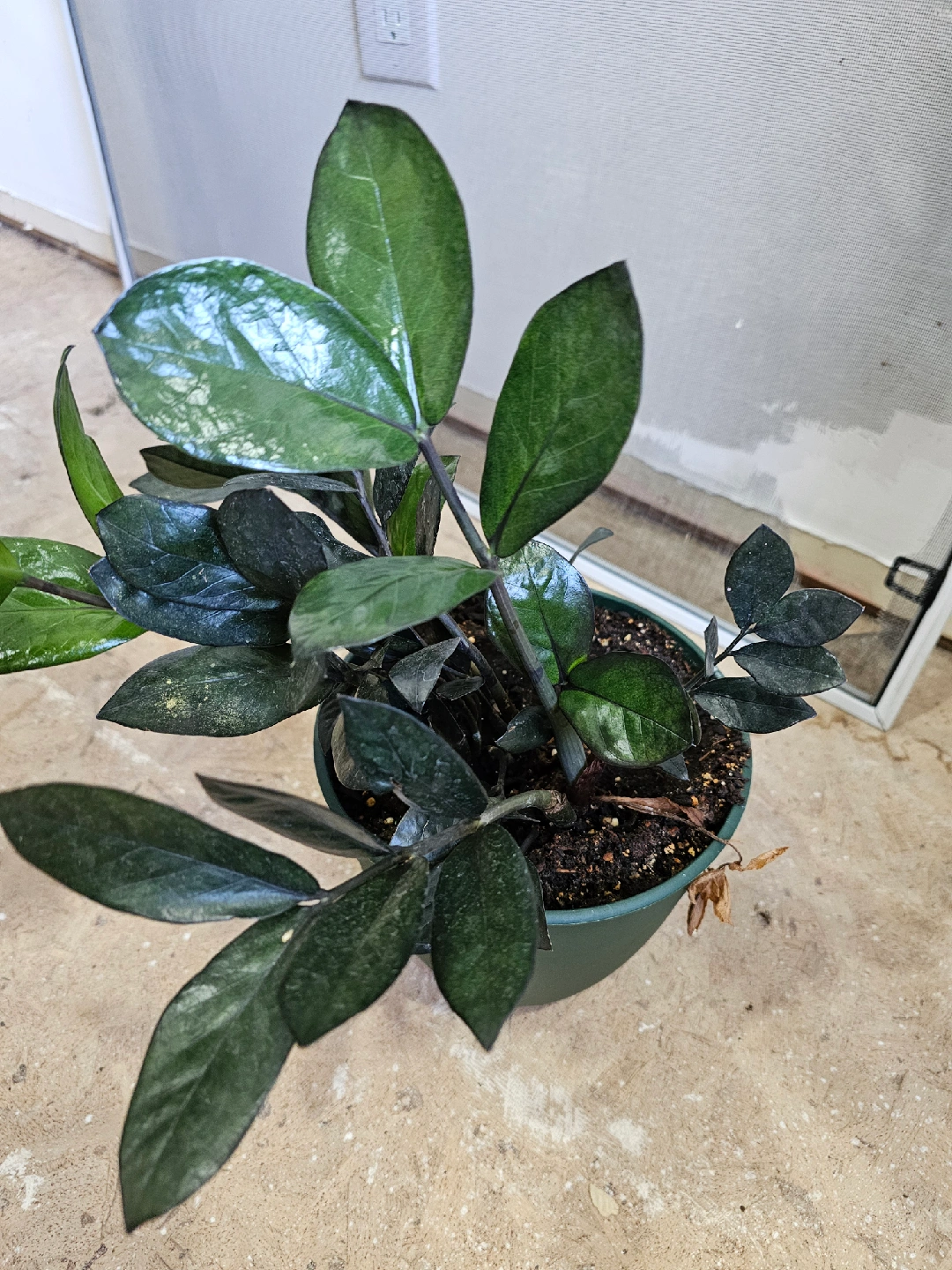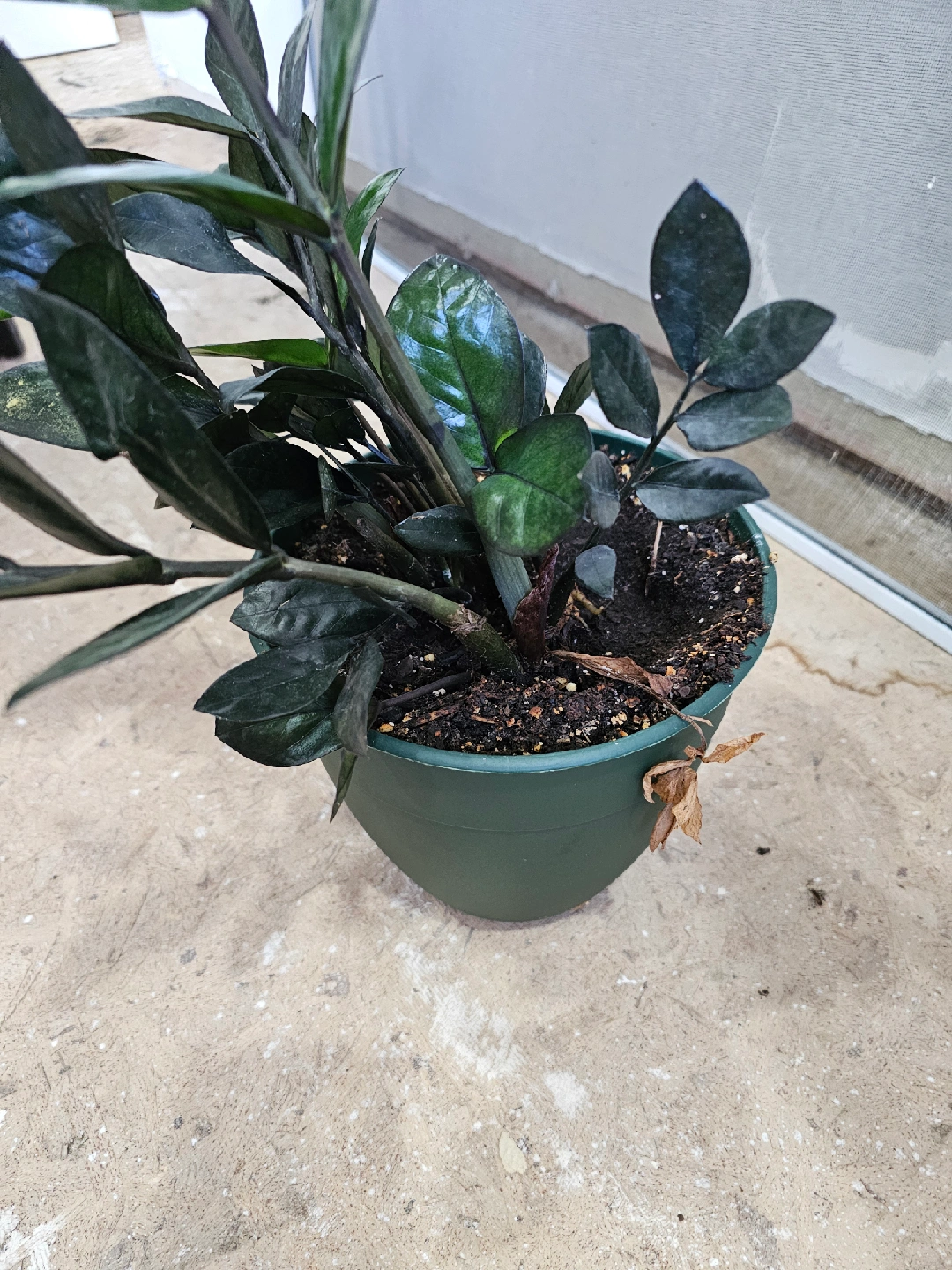 Selling a ZZ plant in a green pot. It's a beautiful plant that's easy to care for and great for adding some greenery to your home
