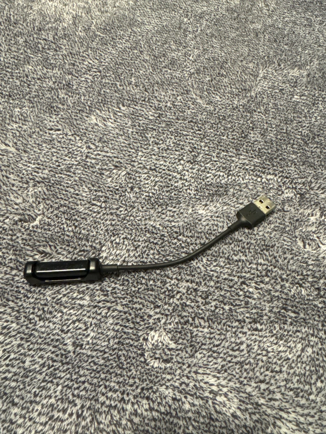 This is a USB charging cable for a Fitbit Charge 4. It's black and comes with a USB-A connector.