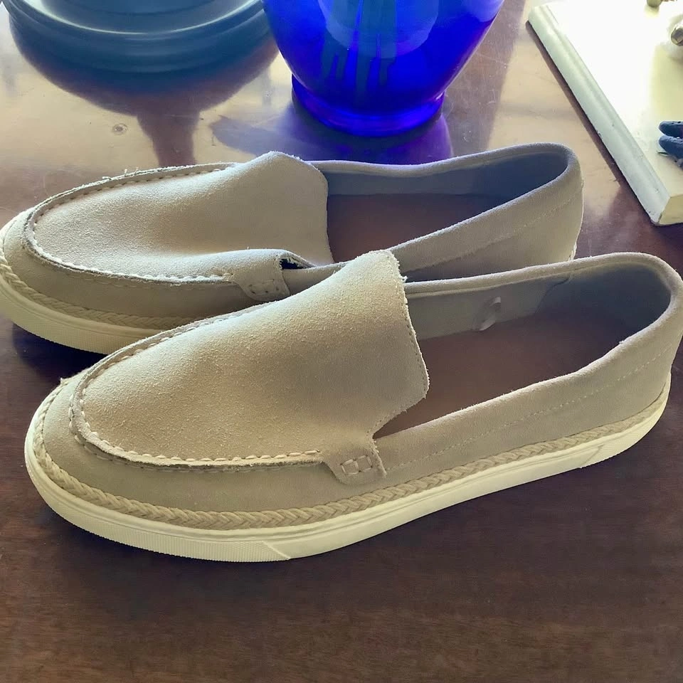 These Zara slip-on loafers are crafted from off-white suede leather, making them a versatile and stylish choice for casual occasions. Featuring a comfortable design with a slip-on closure and round toe shape, these shoes in size EU 42 US 9 are perfect for the summer, fall, or spring seasons. Ideal for men looking for a trendy and practical footwear option. Men’s size 42 which is roughly US 9. Mint condition as these were a gift last summer and wrong size for me. Worn once!