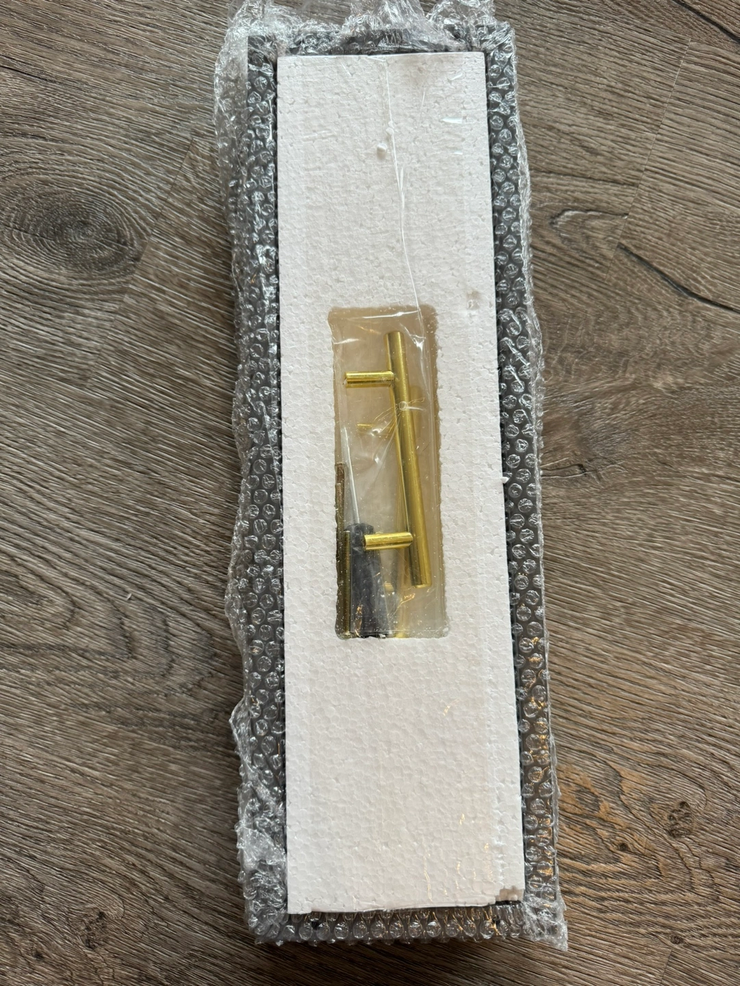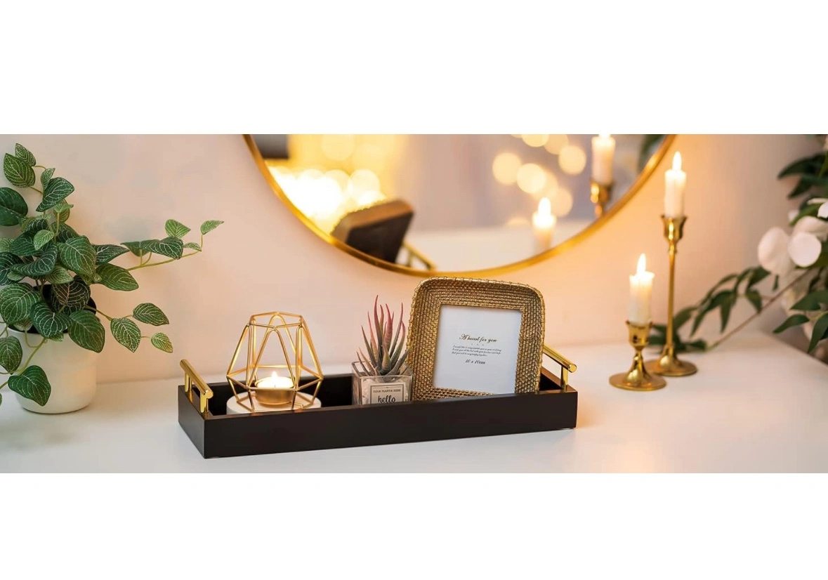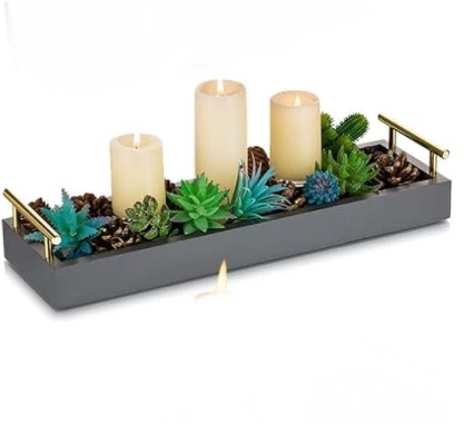 Brand New Decorative Rectangular Candle Holder Tray for Home Decor, Centerpiece Tray Decor with Gold Handles for Dining Table /Coffee Bar /Living Room. Grey with Gold handles.