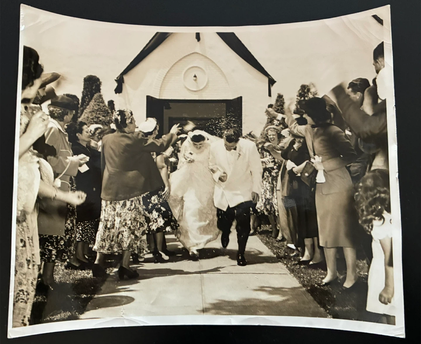$12 MCM 1950s wedding church photo 8x 10 inch vintage original bridge groom rice etc photograph art