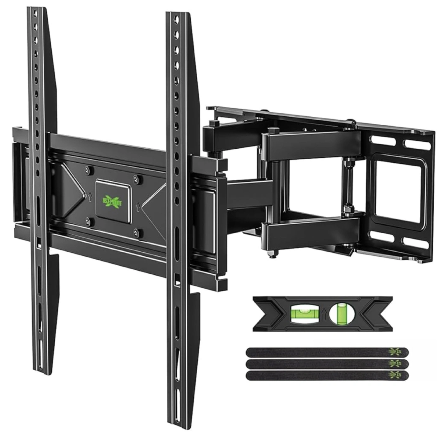 ADJUSTABLE VEIW ANGLE - This full motion tv wall mount with +5° /-12° tilt to reduce glare, ±45° swivel tv wall mount (max swivel angle depends on screen size), level adjusts ±4° for maximum viewing flexibility, all these will make you find the most comfortable and healthiest viewing position, provide you best viewing experience.
