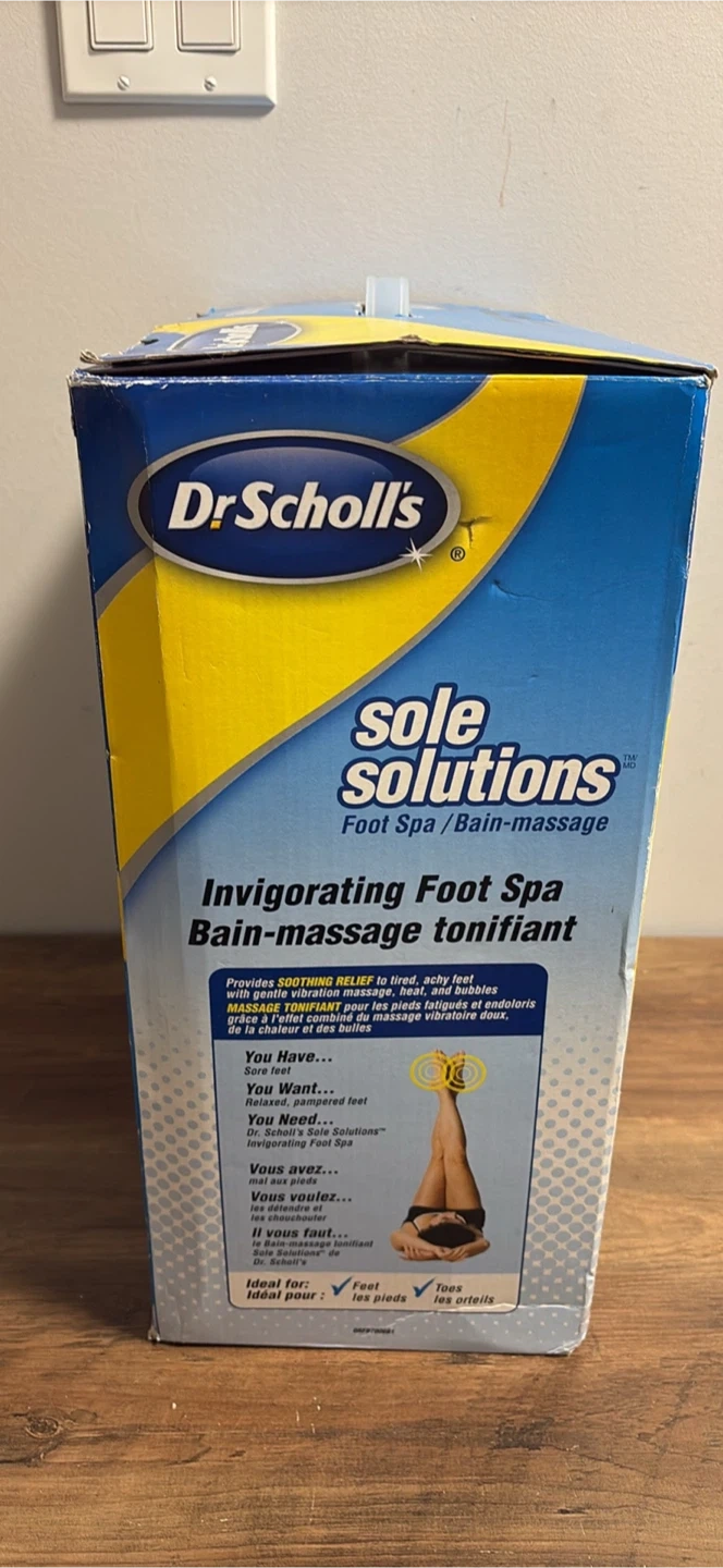 Dr. Scholl's Sole Solutions Invigorating Foot Spa with heat and bubbles. Provides soothing relief to tired, achy feet. Includes massage rollers and vibration.