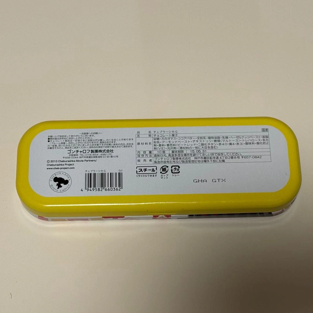 ご覧いただきありがとうございます。 チェブラーシカのアルミケースです。 チョコレートが入っていたものと、ココアが入っていたものです。 - デザイン: チェブラーシカの絵柄 - 素材: 金属製 - サイズ: 長方形 円形(筒形) - 用途: 文房具収納 小物収納 ※二つまとめてのお渡しになります ※ペンは付きません。 #チェブラーシカ #空き缶 #ペンケース #小物入れ #チョコレート缶 #空缶 #ココア缶 #筆箱 #アルミ缶 ご希望の方はお気軽にご連絡ください。