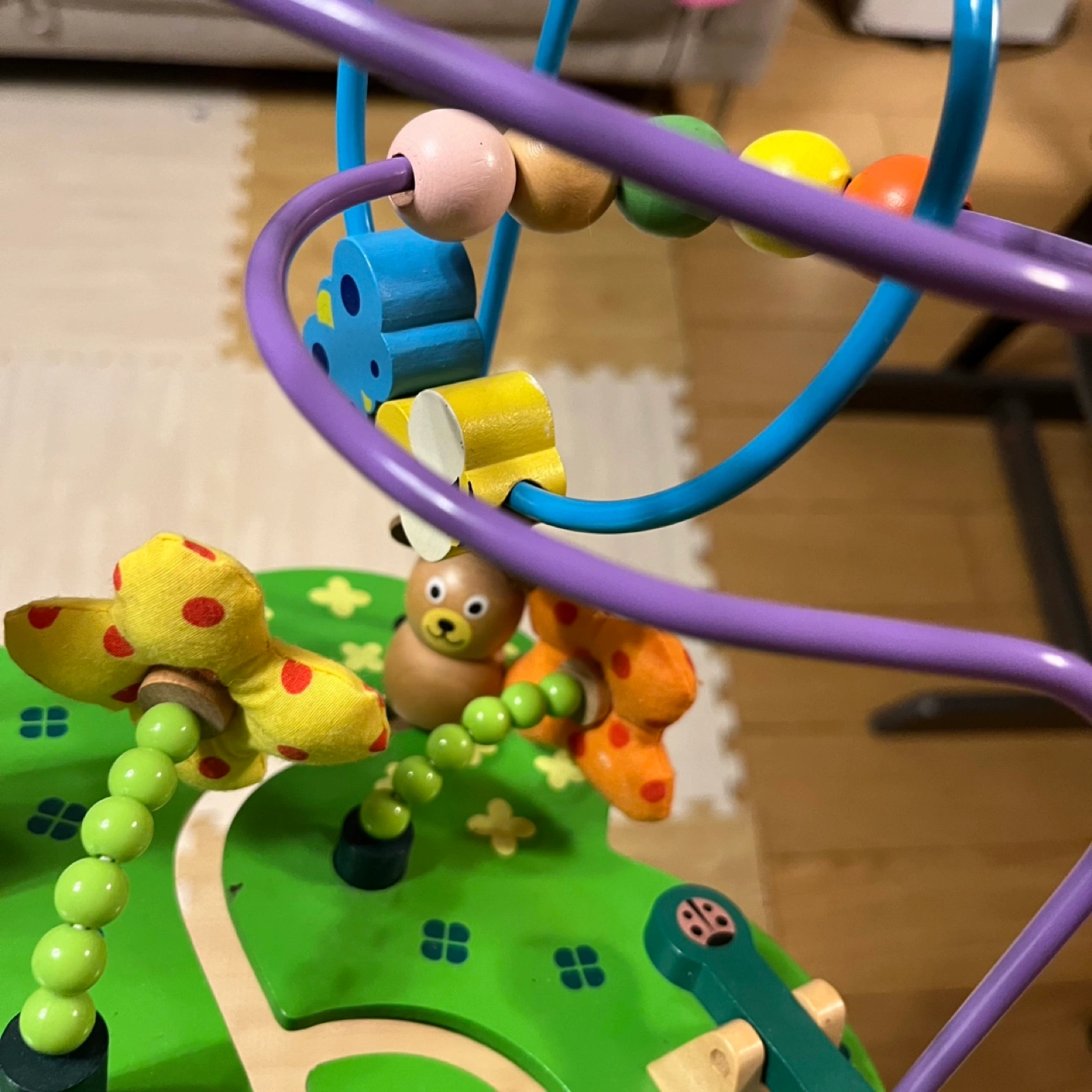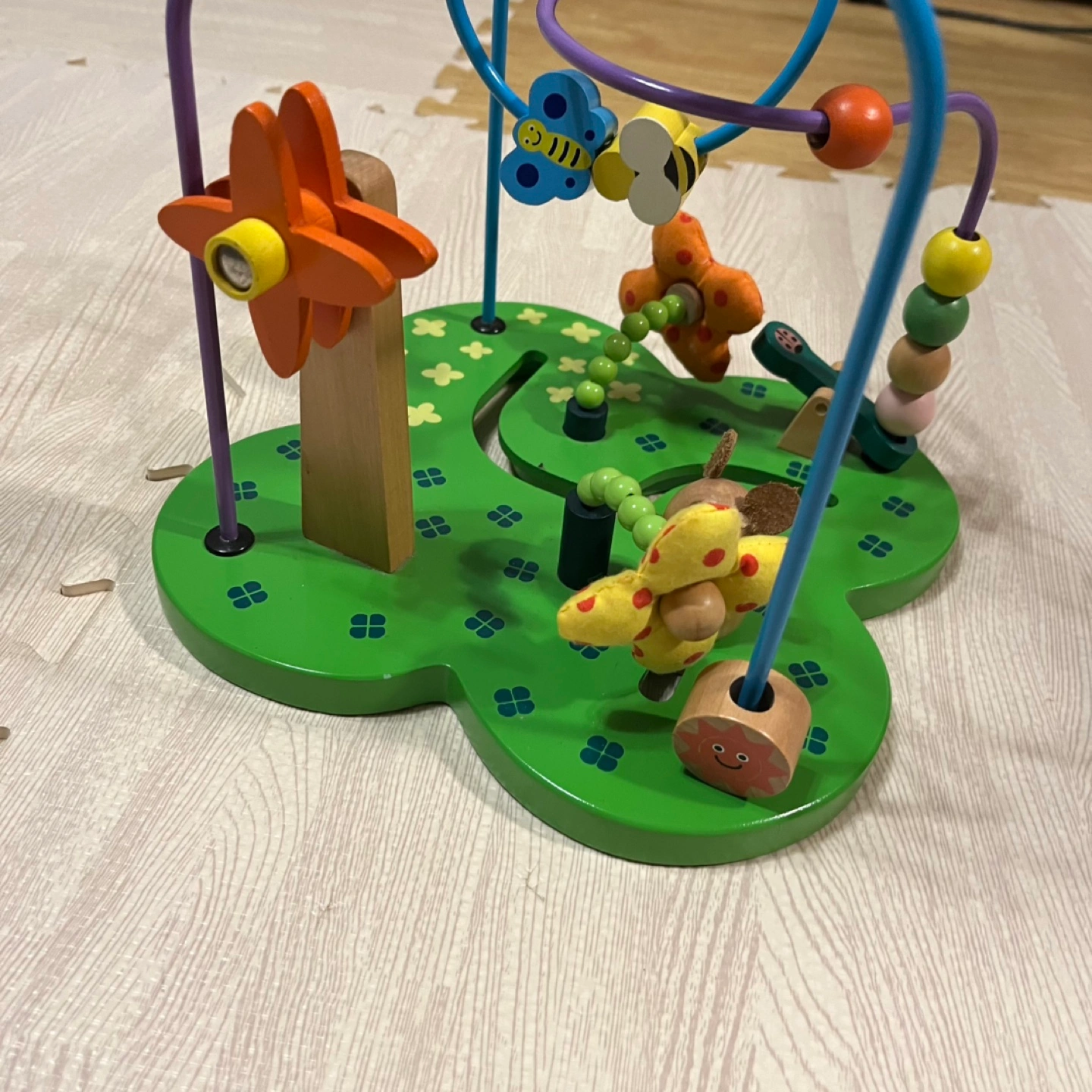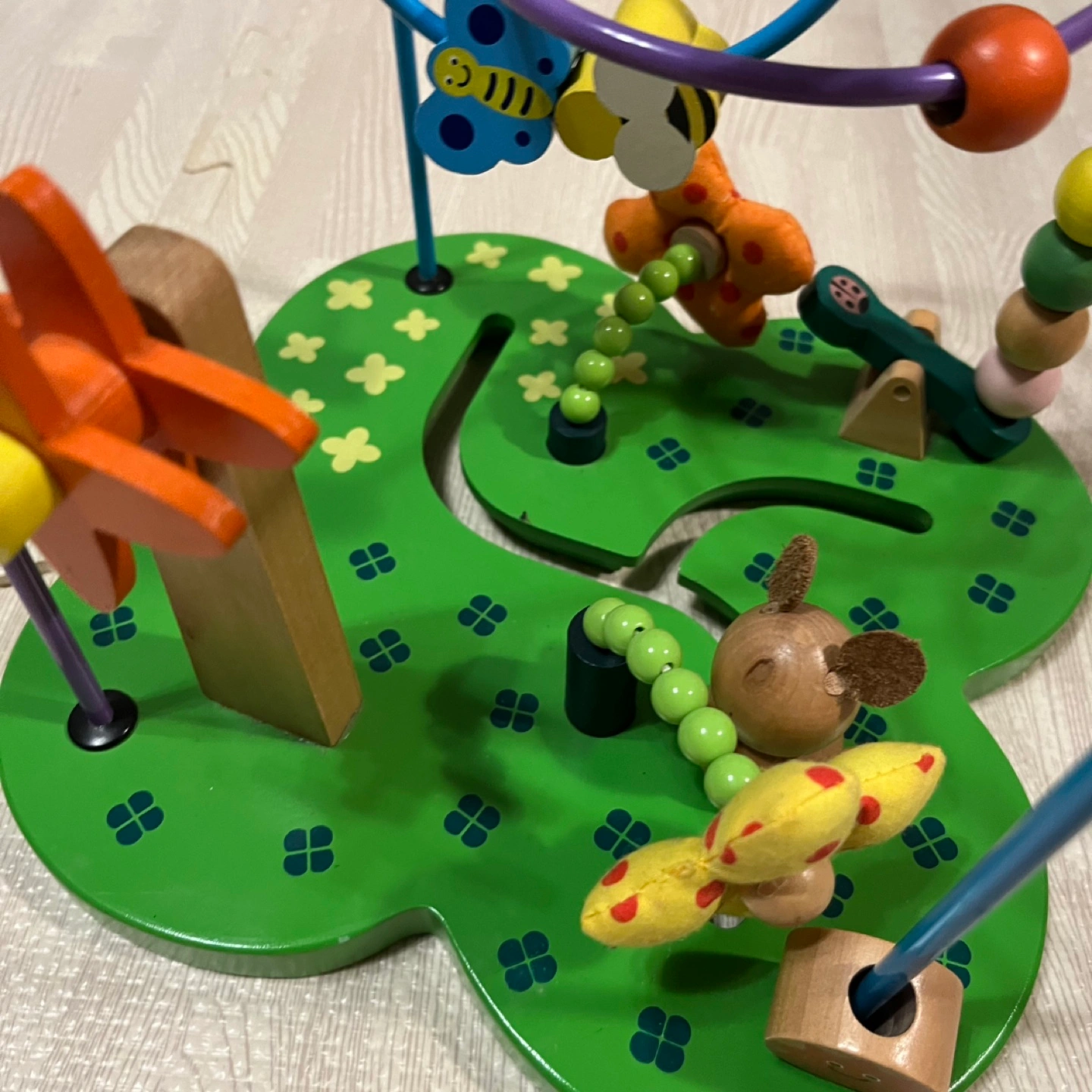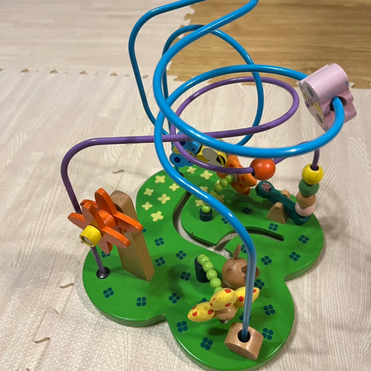 エドインターの木のおもちゃ 動かしたりして指先で遊べます。 ゆらゆら揺れるお花やくるくるまわる風車!くまさんとお花畑をお散歩しよう! ちょうちょやハチが飛ぶお花畑をくまさんと一緒にお散歩。風車がくるくる回ったり、お花がゆらゆら揺れたり、シーソー遊びでちょっと寄り道も…。指先の器用性だけでなく、物語を作り上げる創造力も豊かに育みます。 サイズ(商品本体)22×22×26cm 対象年齢0歳~ 定価(税抜)3,400円 全体的に細かな傷はありますが、使用に問題なくまだまだ使えます! 使用頻度は少なめです あくまで中古品の旨ご理解ください