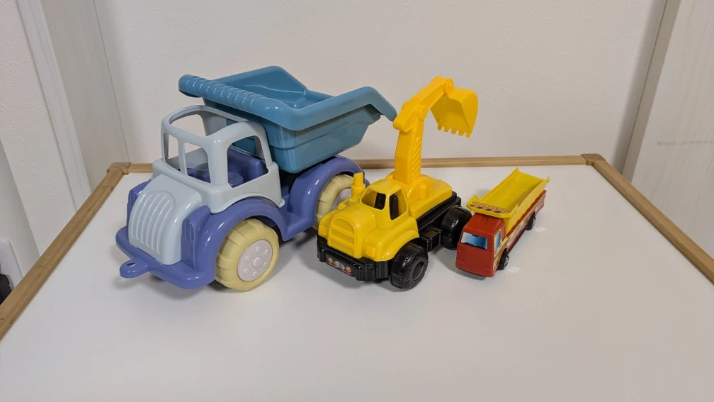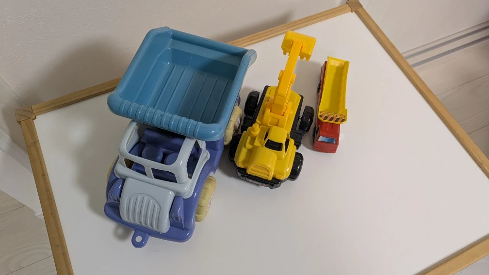 おもちゃの車3点セットです。 トラックはスリーコインズで購入 他は不明です。 ・トラック、ショベルカー、ダンプカーのおもちゃ ・プラスチック製 ・使用感あり 中古品であることをご了承ください。 別で出品しているプラレール、ミニカーとセットで100円引きにさせていただきます。 全てセットで600円にいたします。 取引場所は指定場所以外でも相談可能です。