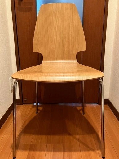 10年程前に購入したイケアの椅子(VILMAR 現在は廃盤)です。 【サイズ】高さ:87cm 幅:51cm 奥行き:55cm座面幅:46cm 座面奥行き:42cm 座面までの高さ:45cm 【状態】 座面の一部分の塗装が少し剥げています(画像3枚目参照)が、状態はいいのでまだまだ使用可能です。 脚固定用のレンチもお付けします(画像4枚目参照) 【希望取引場所】 セブン-イレブン 武蔵野境5丁目店 【希望取引日時】 調整可能です ドタキャンしない方、中古品のためサイズや状態など が目安であることをご了承いただける方のみお問い合わせください。 よろしくおねがいします。