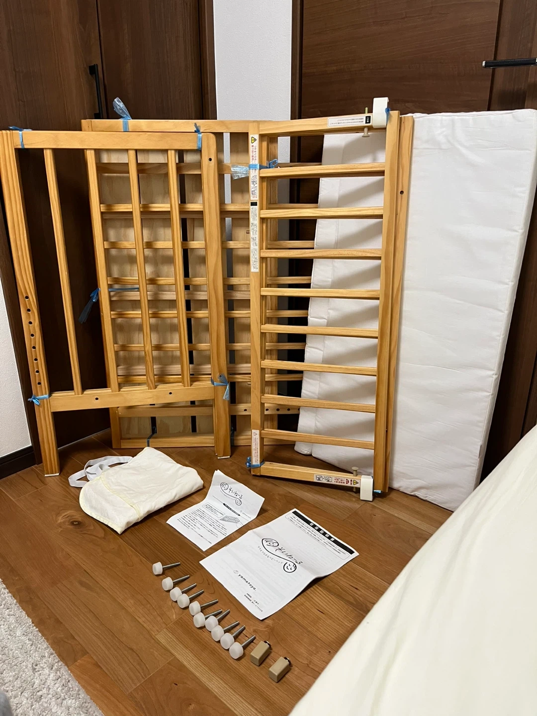そいねーる本体に加え、専用マットレスと防水シートもセットでお譲りします。(布団はありません) なお、そいねーる本体に付属していたサポートベルトはございませんのでご了承ください。 【情報】 ブランド:大和屋 種類:ベビーベッド 大人のベッドの横に設置できるので、夜泣きにもすぐ対応できてお世話しやすく本当に助けられました!おすすめです。 大きなダメージ等ありませんが、小傷があります。 写真でもご確認ください。ご理解いただける方でお願いします。 お値引きも検討可能です。お問い合わせくださいー。