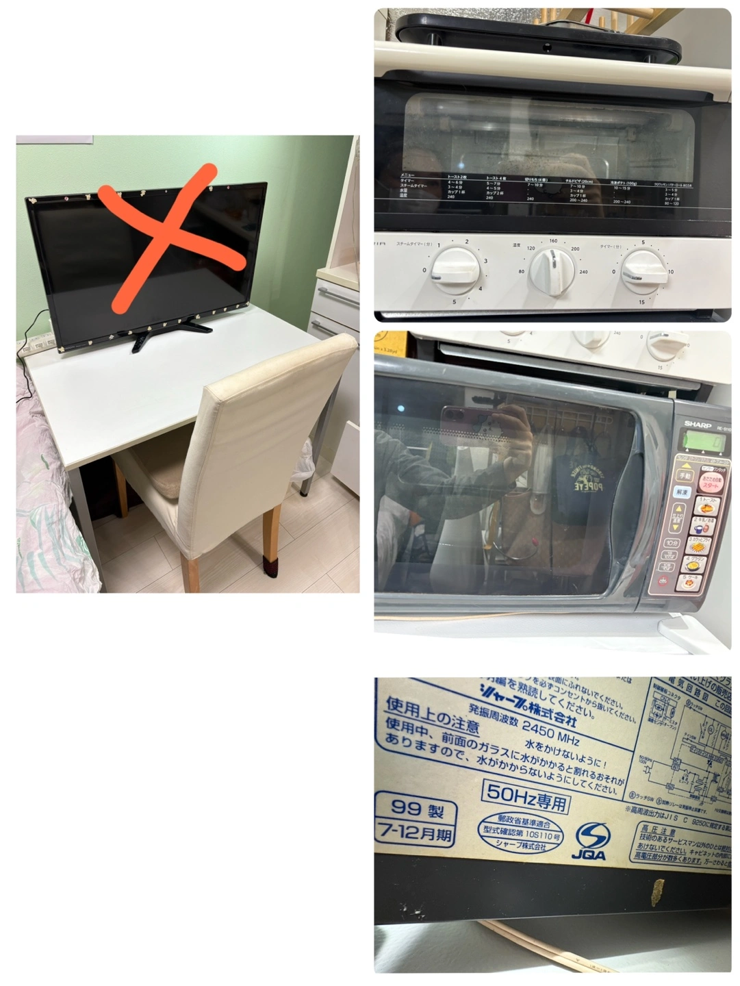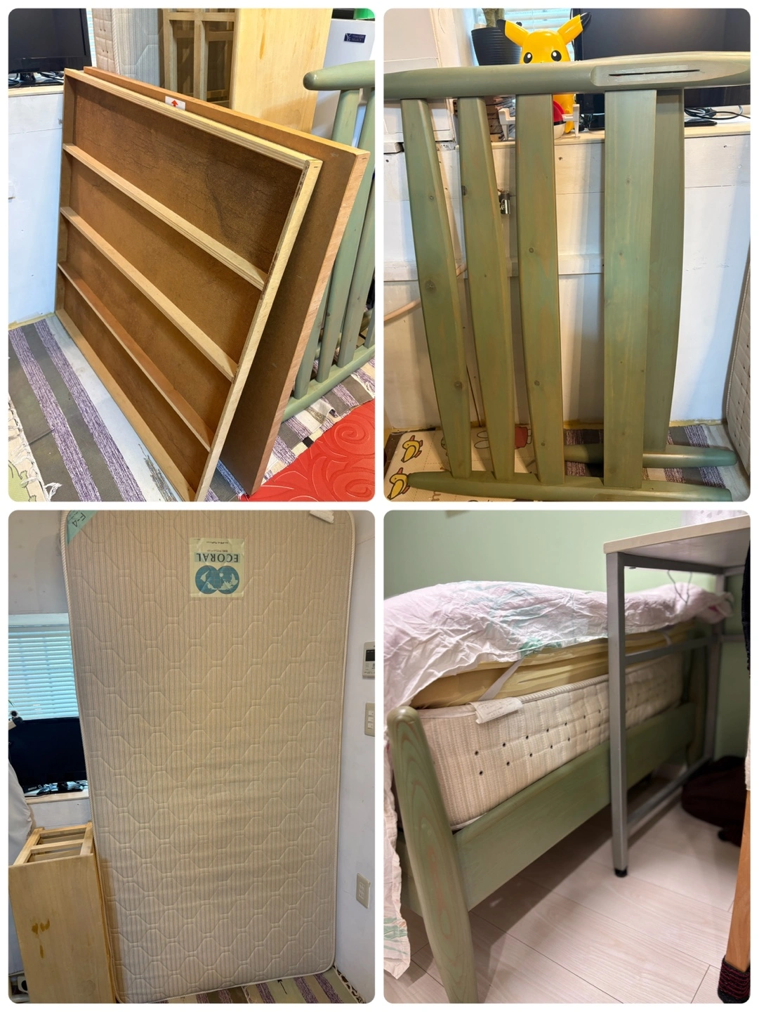 #キャロットで新生活 【商品内容】 高画質画像、詳細 随時アップします https://share.evernote.com/note/4dd562fc-4992-e533-7597-ed5ce7627e26 取引先は自宅までお願い致します。 1万円で全て差し上げます! 引越しに合わせて直接引越し業者さん呼んでも大丈夫です! 我が家も引越しするので、少しでも引越し費用に したいのでご協力よろしくお願い致します! -家電- ⚫︎冷蔵庫(2019年) ⚫︎洗濯機 SHARP 7キロ(2015年) ⚫︎電子レンジ(2021年) ⚫︎炊飯器タイガー5合(2009年) -家具- ⚫︎シングルベットフレーム ⚫︎シングルベットマットレス (マットレス使っていたので、直接ベットマットレスには接してないようです)写真でご確認頂けます。 ⚫︎デスクワークセット ⚫︎机、椅子、 ⚫︎キャビネット、 ⚫︎ライト、 ⚫︎パソコンモニター ⚫︎タンス(下着や靴下入れなどに) ⚫︎スチールラック -その他- まとめて全て購入の方には 下のも差し上げます。 ゲーミングキーボード(新品未使用) デスクライト(新品未使用) Bluetoothヘッドホン(新品未使用) 食器、キッチン用品など いろいろあるので 直接見て持って行っていいです。 知人が海外転勤にともない、 うちで荷物を預かっていて代理で出品しています。 とても綺麗好きな女性が使っていたので、 使用感はあるもののどれも綺麗です。 ベットマットレスは目立った汚れもなく綺麗です。 ベットフレームもアンティーク調のデザインになっています。値段もそこそこしたそうです。 写真まだ全部アップしていませんが、随時アップいたします。 4月末くらいまでお取り置き可能です。 記載以外にもこれありますか?など聞いてください。 あればご提供致します。 引越しに合わせてなどご要望承ります。 お気軽に連絡ください。 平日、日中は仕事しているので、返信が遅れる事もあります。ご了承ください。