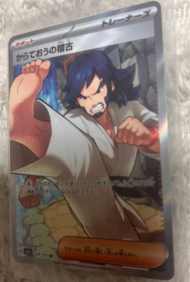 相手のポケモンに40ダメージを与えるサポートカードです。 カード名:からておうの秘伝 カードタイプ:サポート カード番号:220/193 イラスト:格闘家キャラクター 効果:相手のポケモンに40ダメージ 開封後、すぐにフィルターに保管しました。 商品の状態は写真のとおりです。 購入前に写真をご確認ください。 #ポケモンカード #ポケカ #ポケカ販売 #ポケカコレクション #ポケカサポート #からておうの秘伝 #SAR #SR #トレカ #カードゲーム #PokemonCard ご希望の方はお気軽にご連絡ください。