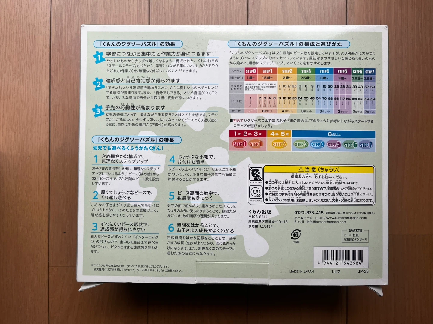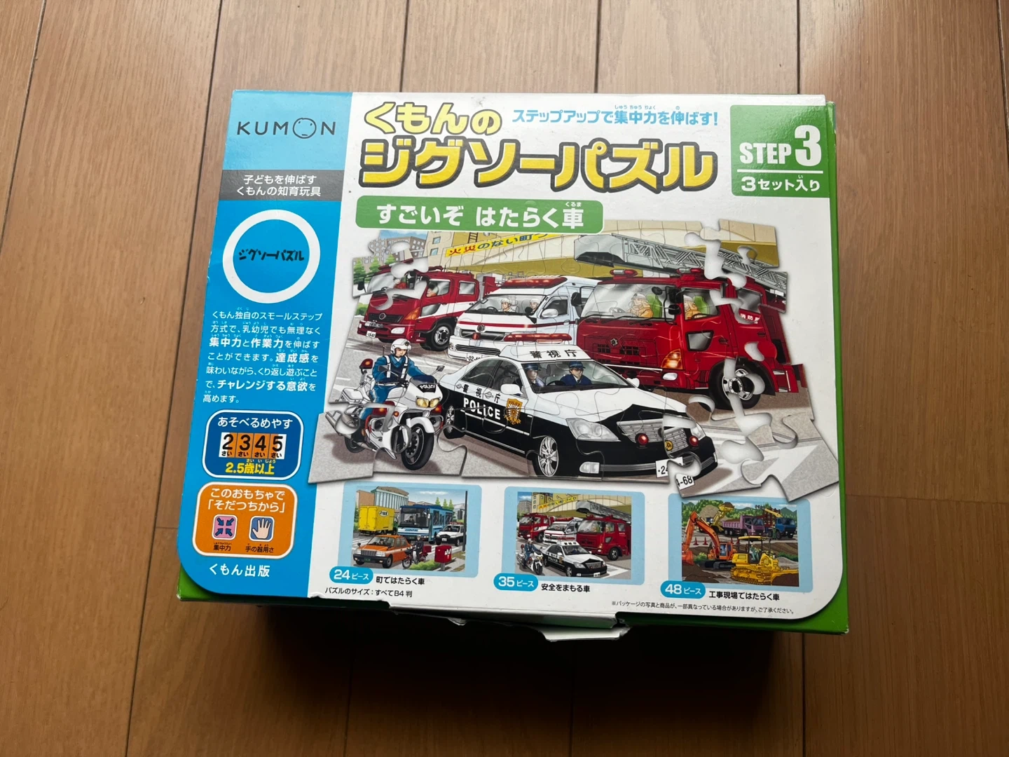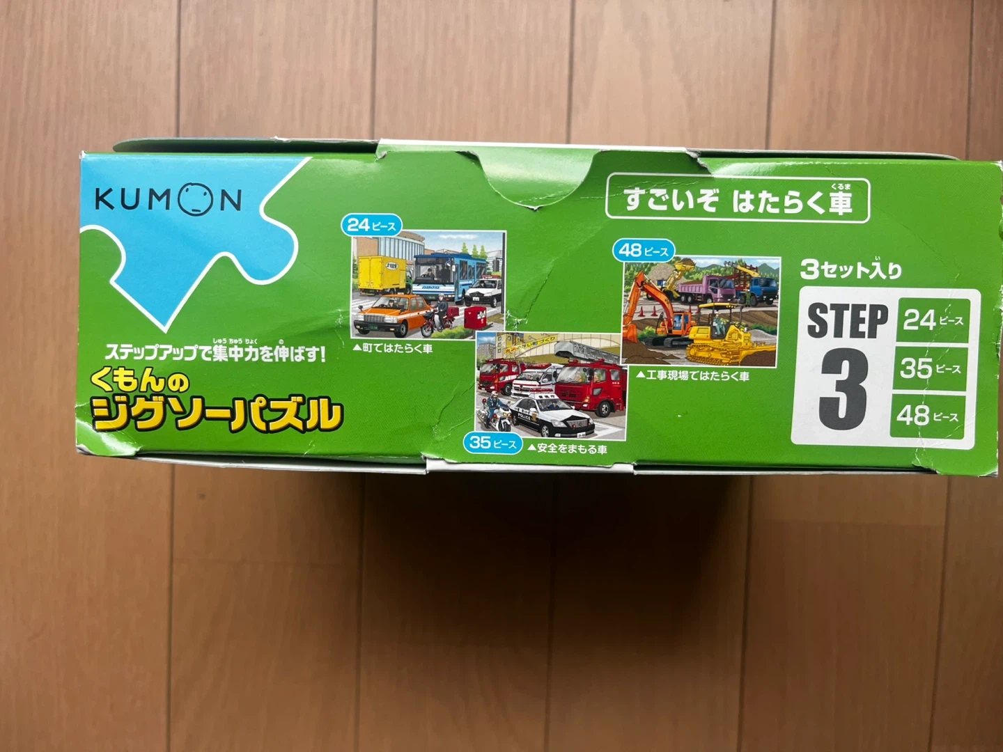 くもんのステップアップジグソーパズルSTEP3の乗り物編です。 ・内容:3セット入り(24ピース、35ピース、48ピース) ・状態:中古品、箱に少しダメージあり 自宅保管の中古品であることをご理解いただき、返品・返金は承っておりませんので予めご了承くださいませ。 ※他の出品物とまとめてご購入いただける場合はお値引きいたします。 ※世田谷区内・近辺であればお近くまでお届けも可能です。ご相談ください。