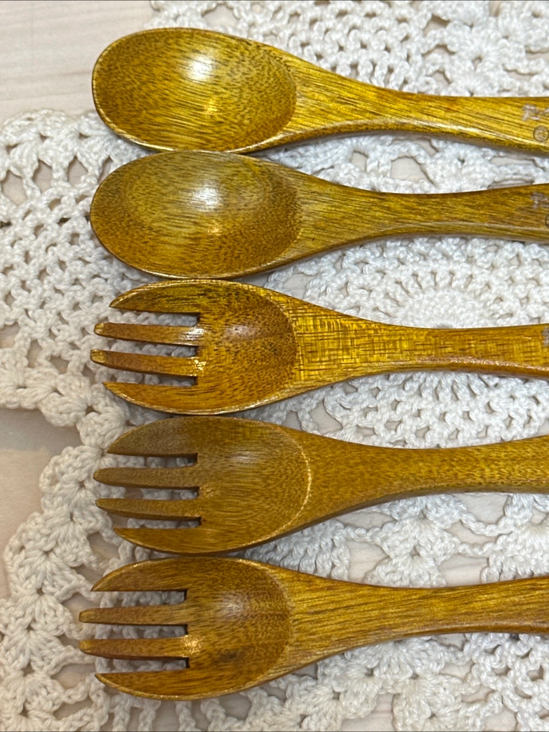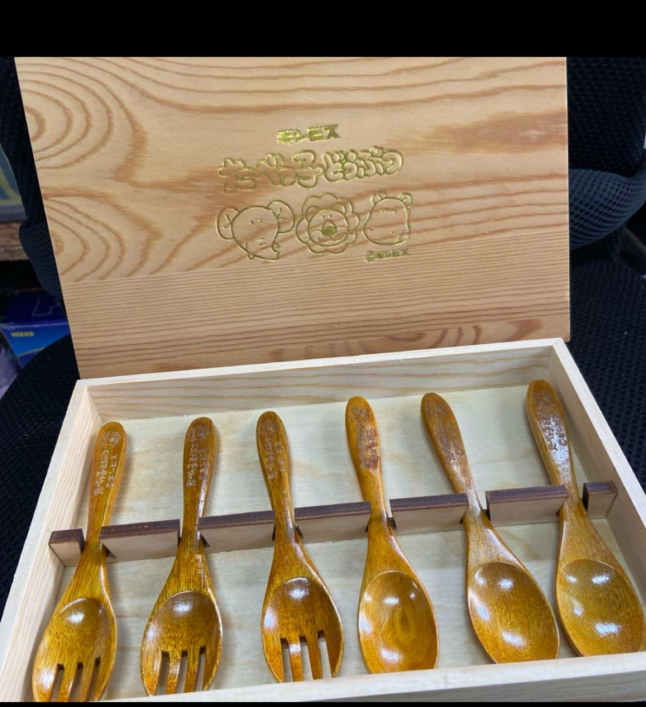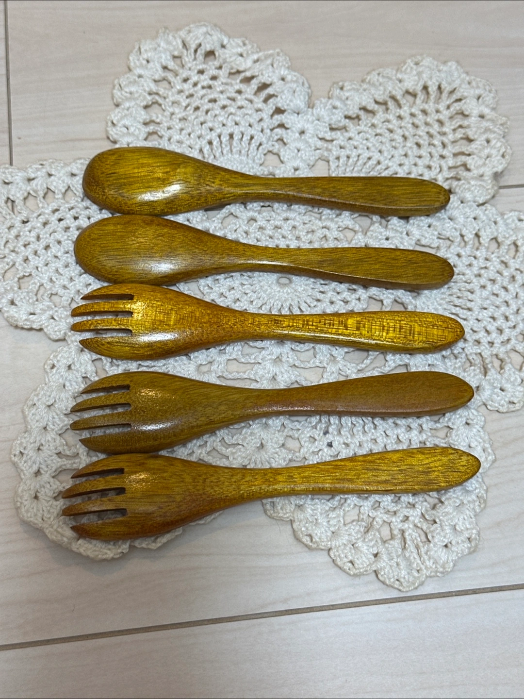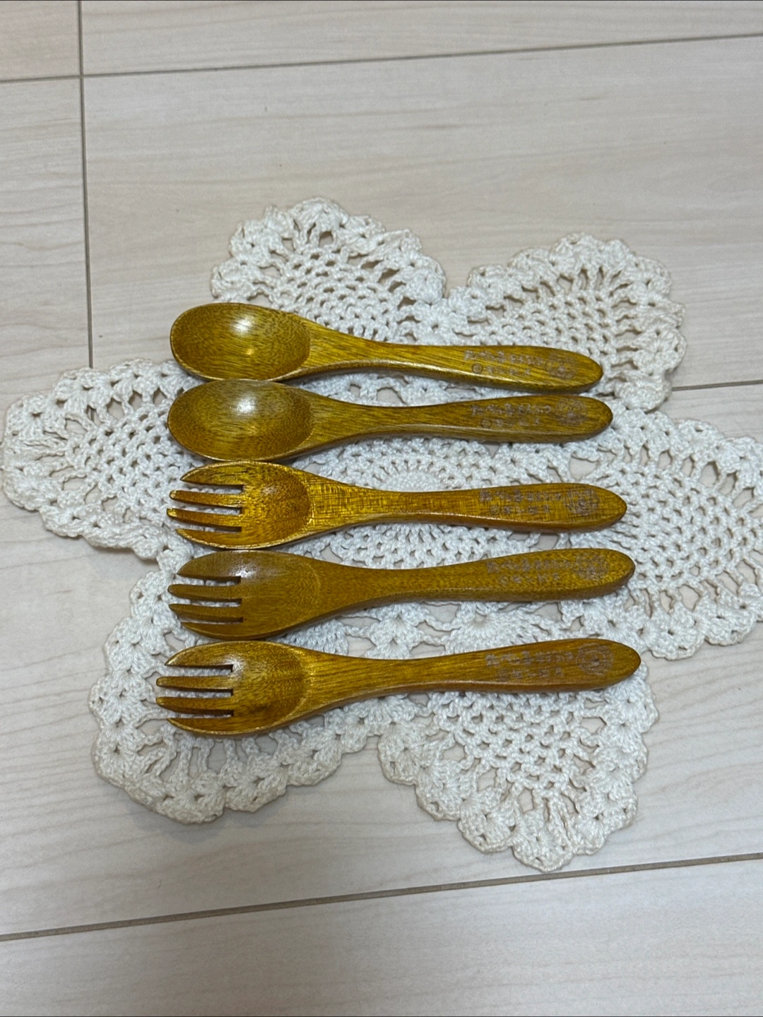 ご覧頂きありがとうございます♪ たべっ子どうぶつの木製フォークとスプーンのセットです。 元々は1枚目のように箱に入っていたのですが、 スプーンを1本だけ使用してそれ以外は 箱から出して棚で保管しておりました。 未使用の分+おまけ(中古くまさんの木製スプーン)を出品します。 完璧を求める方は店舗で定価にてご購入ください。 他のサイトにも出品しておりますので早い者勝ちです!