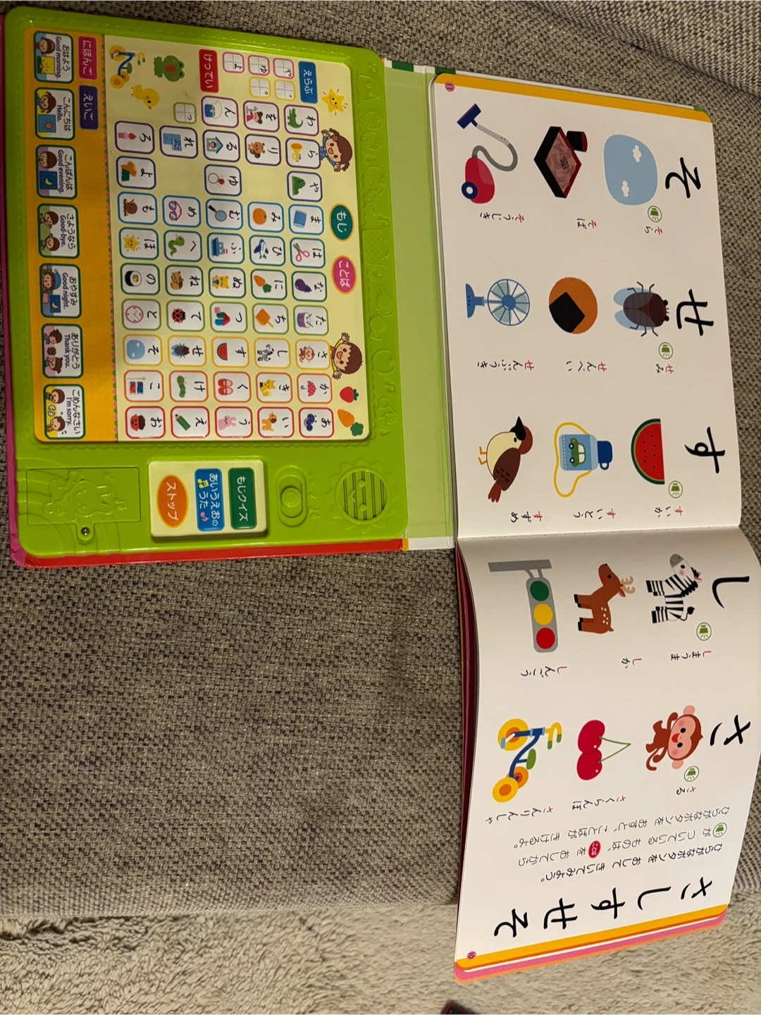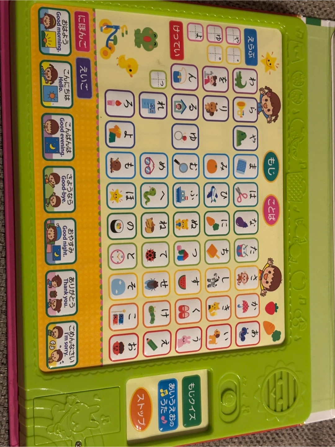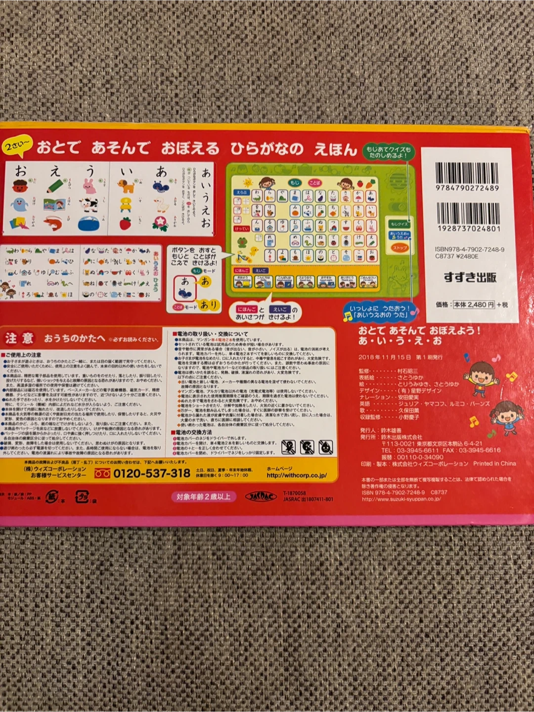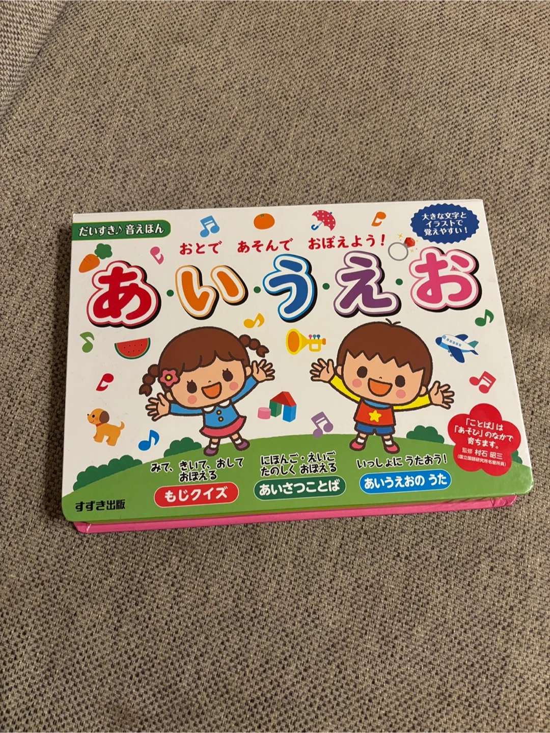 あいうえおの絵本 ボタンを押すと音が出ます。 クイズや歌もあってお値段以上に楽しめます! ・商品名:あいうえお ・種類:絵本 ・出版社:スズキ出版 ・対象年齢:2歳以上 ・定価:2,480円+税 ・状態:使用感はありますが、比較的きれいです、音も問題なく出ます。 中古品であることご了承ください
