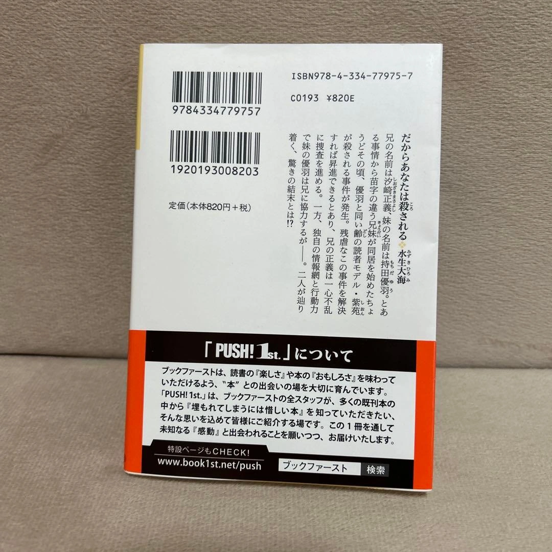サスペンス小説「だからあなたは殺される」。 - タイトル: だからあなたは殺される - 著者: 永生大海 - シリーズ名: PUSH! - 定価: 820円(税別) ご覧いただきありがとうございます。 ご希望の方はお気軽にご連絡ください。