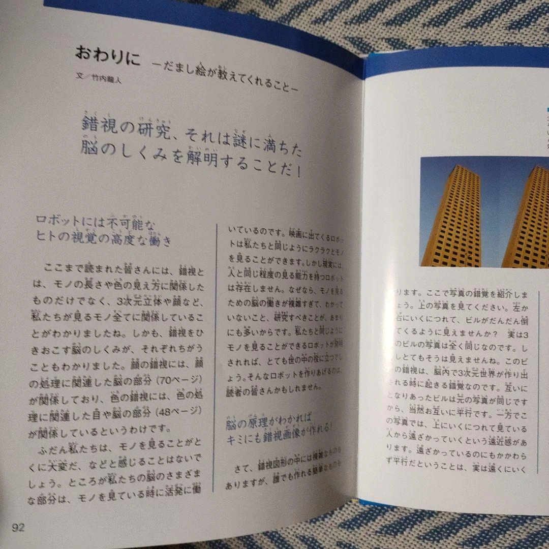 遊びながら脳のしくみを学べる絵本です。 - タイトル: だまし絵でわかる脳のしくみ - 著者: 竹内薫 - 定価: 2200円 - ISBN: 9784161621214 - 内容: 遊びながら体験する脳のしくみ ご覧いただきありがとうございます。 子供が読んだ後に自宅保管していました。 カバーの角が少し潰れてしまっているか所がありますが、本の中は大きな汚れ破け等は見当たりません。 自宅保管で中古品となるため、上記以外にも細かい傷等気が付かないものがあるかもしれません。 気になさらない方にご検討頂けたらと思います。 ご不明点はお気軽にお問い合わせください。