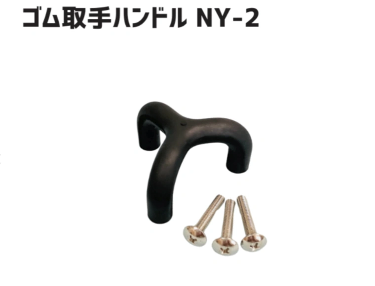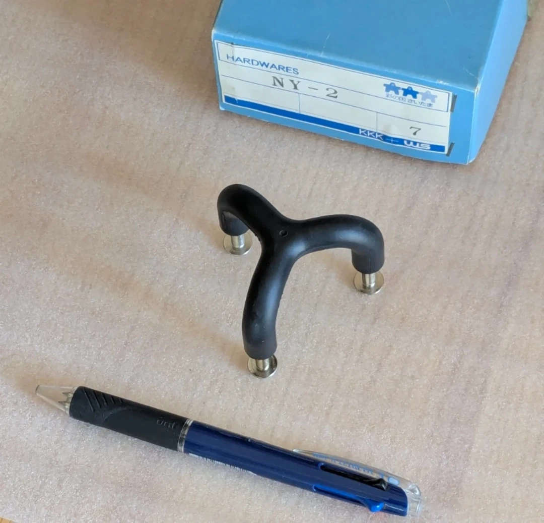 三足のゴム取手ハンドル、7個 ゴムなのでぶつかっても痛くない!? ラフに使う引き出しとかに合いそうです 7個の出品ですが、まだ他に29個あります ビス穴は実測51-53ミリの正三角形です ゴムなので多少の融通はきくとおもいます 【情報】 型番:NY-2 色:ブラック サイズ:W62mm, H32mm 【状態】 未使用ですがだいぶ前のものなので中古品相当とします 経年劣化で白化していましたが保護つや出し剤(クレポリメイト)で手入れ済です 【付属品】 トラスビス(クロムメッキ)M5×28同梱 価格応相談