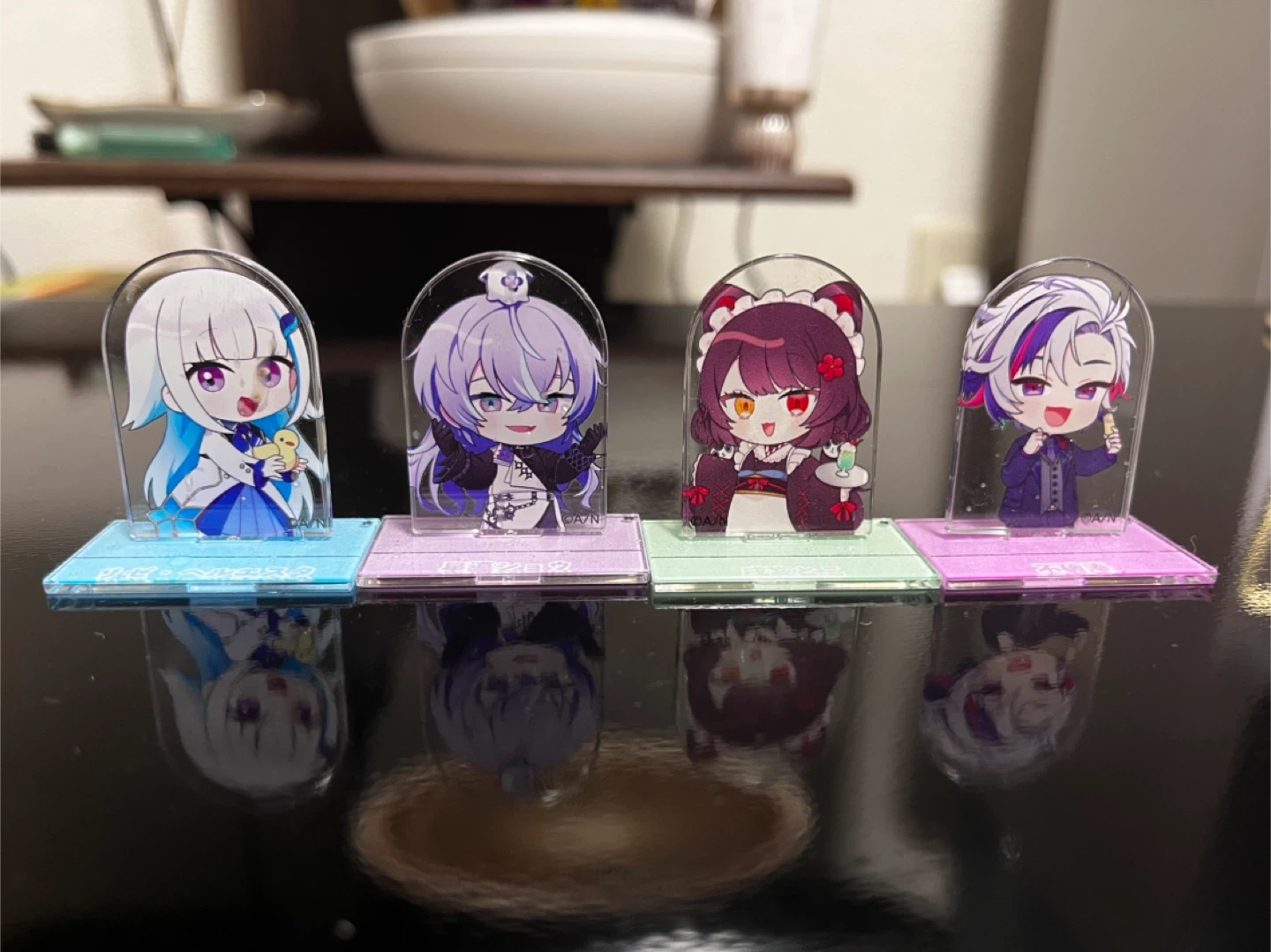にじさんじチョコエッグのアクスタです。 リゼ・ヘルエスタ、星導ショウ、戌亥とこ、不破湊です。