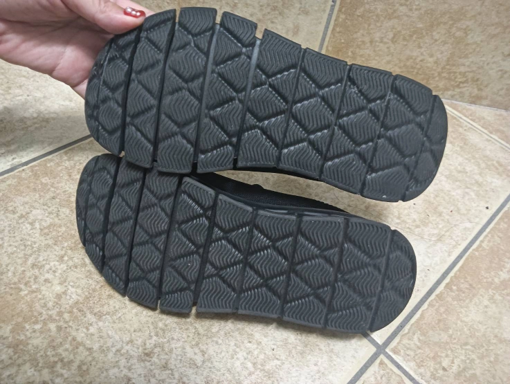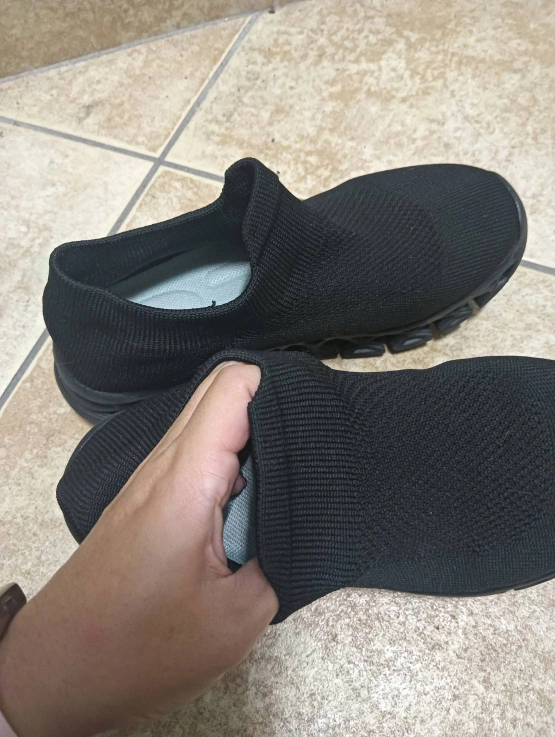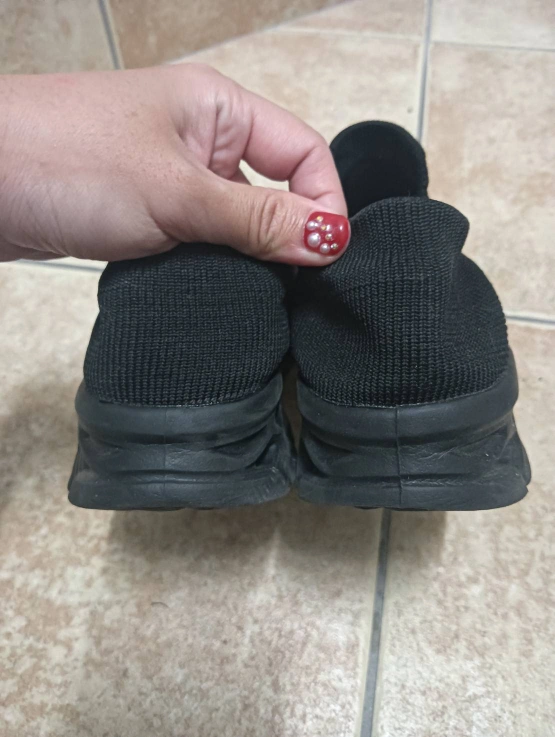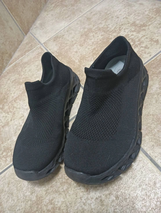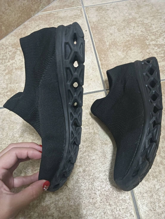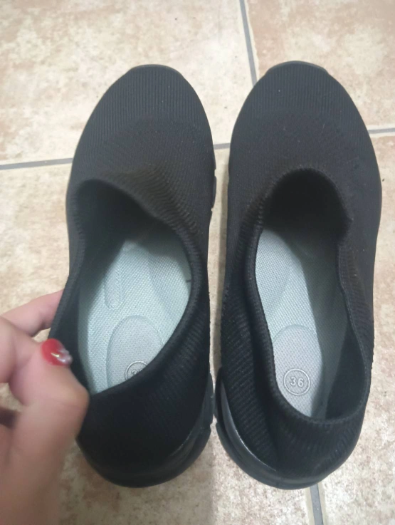 サイズ36 スリッポン 厚底部分の形がとてもユニークで、クッション性があるイメージで、歩いていて疲れにくいです。 上の部分はストレッチがきいた 布タイプなので、ダンビロの方 、足の幅が広い方 、狭い方、 どなたでもぴったりフィットします。 また 布タイプなので潰して平たくすることができますので、ご旅行先に持っていくのにもスーツケースの場所を取りません。 長時間の歩行 移動にも向いていると思います。