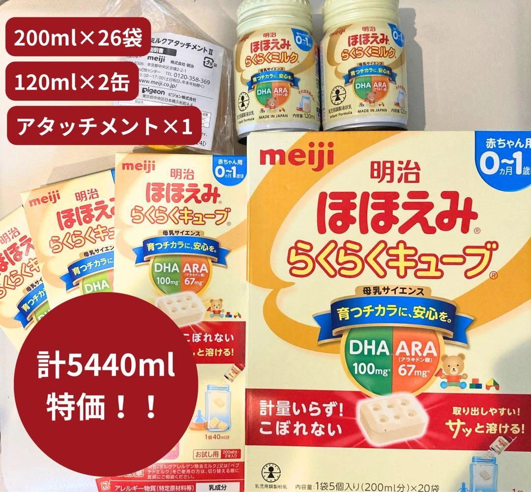 ほほえみらくらくキューブ5200ml+ほほえみらくらくミルク240ml+アタッチメントのセットです! 【詳細】 ・ほほえみらくらくキューブ 200ml×20袋 賞味期限:2026/07 ・ほほえみらくらくキューブ 200ml×2袋×3箱 賞味期限:2026/01 ・ほほえみらくらくミルク 120ml×2缶 賞味期限:2026/02 ・らくらくミルクアタッチメントII 新品未使用未開封 ご希望の方はお気軽にご連絡ください。