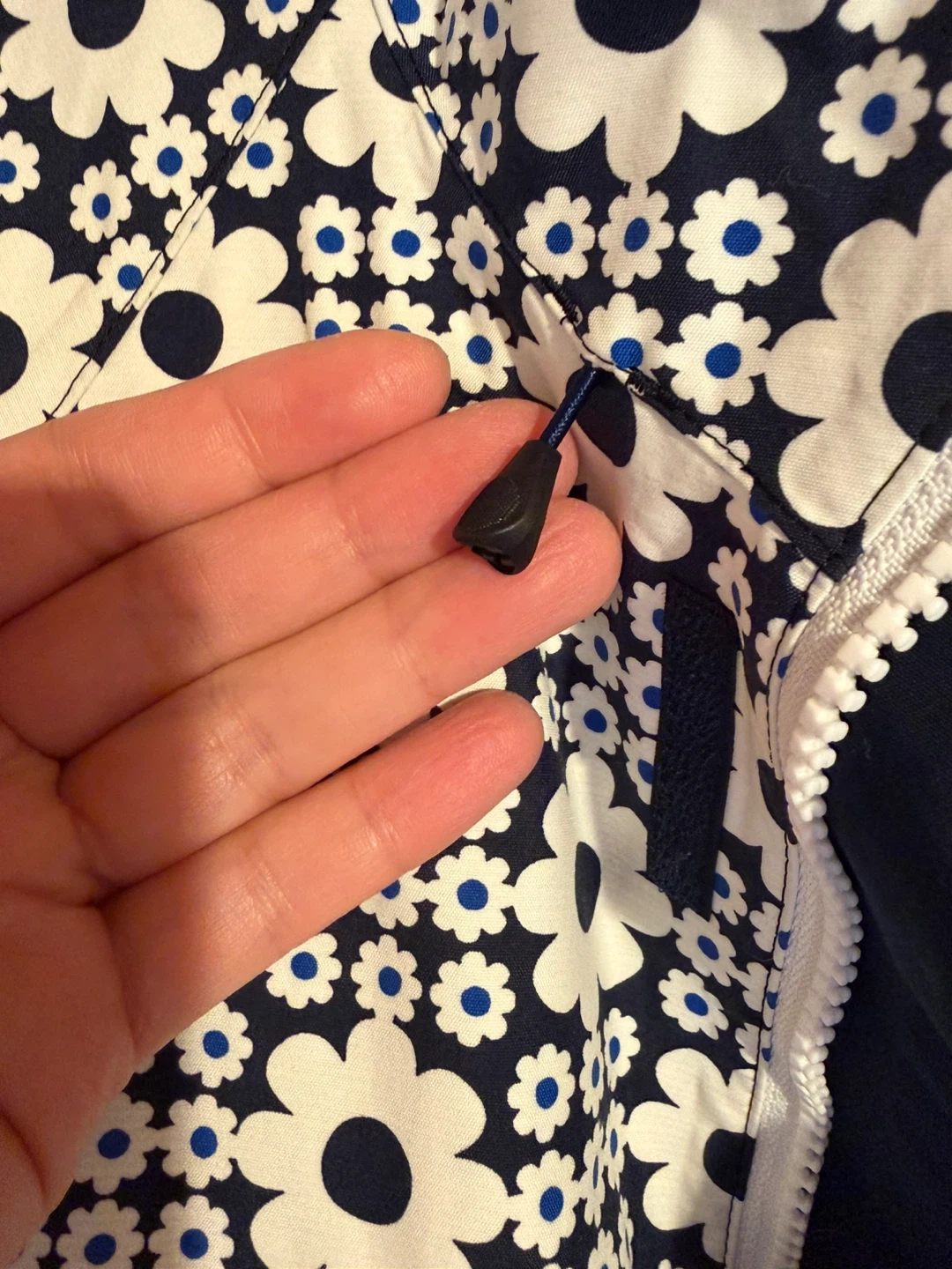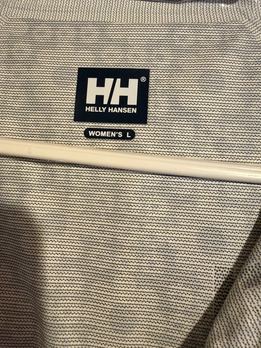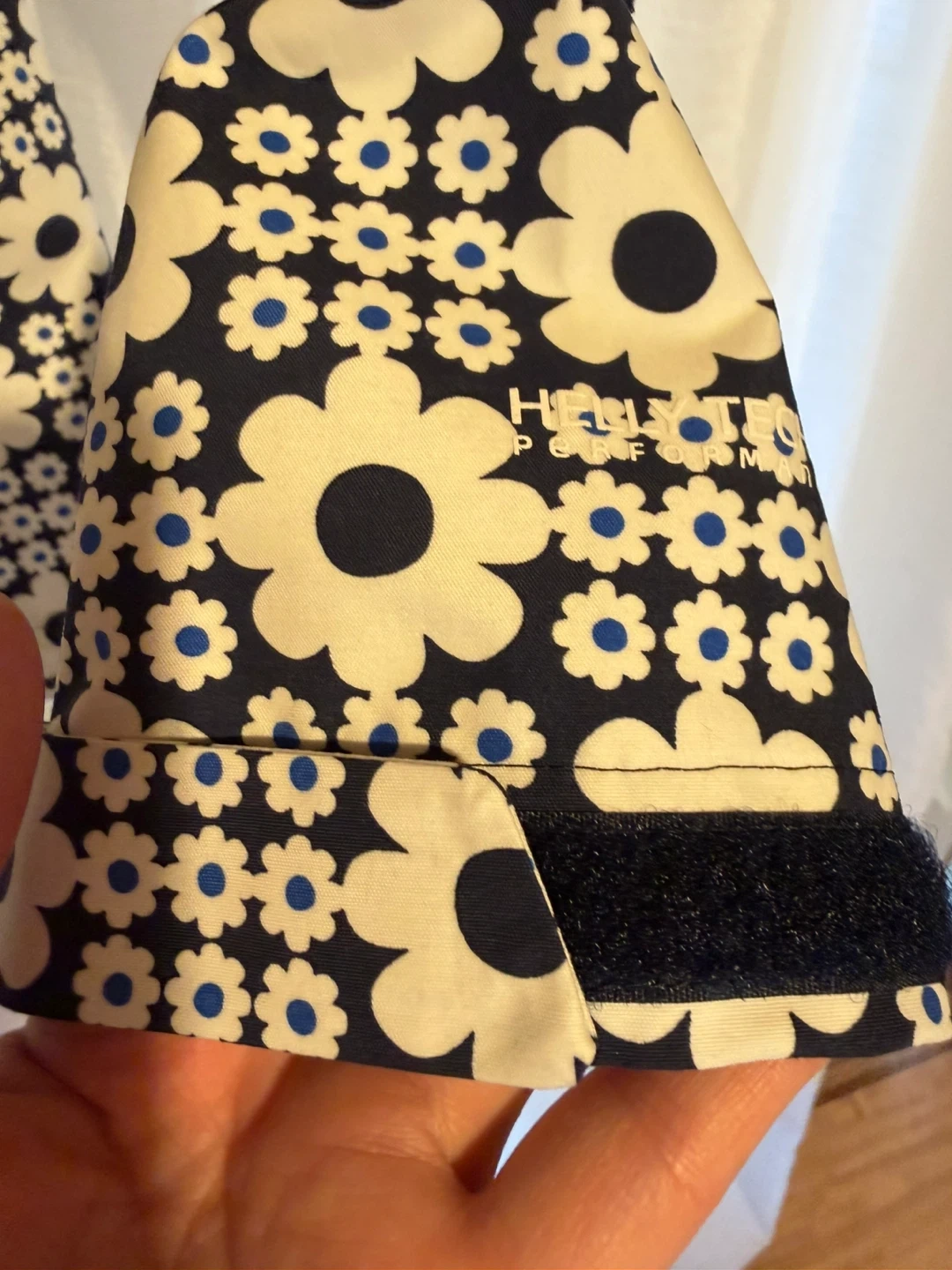 ほぼ新品ヘリーハンセンのジャケットです 【情報】 ブランド:ヘリーハンセン サイズ:L(WOMEN'S L) 柄:花柄 色:白、紺、青 両サイドにポケット付いてます フードも付いてます 前部分は、ファスナーとマジックテープの両方が付いています 1度だけ着用しました とても綺麗な状態です 受け渡し場所 北綾瀬駅、亀有駅