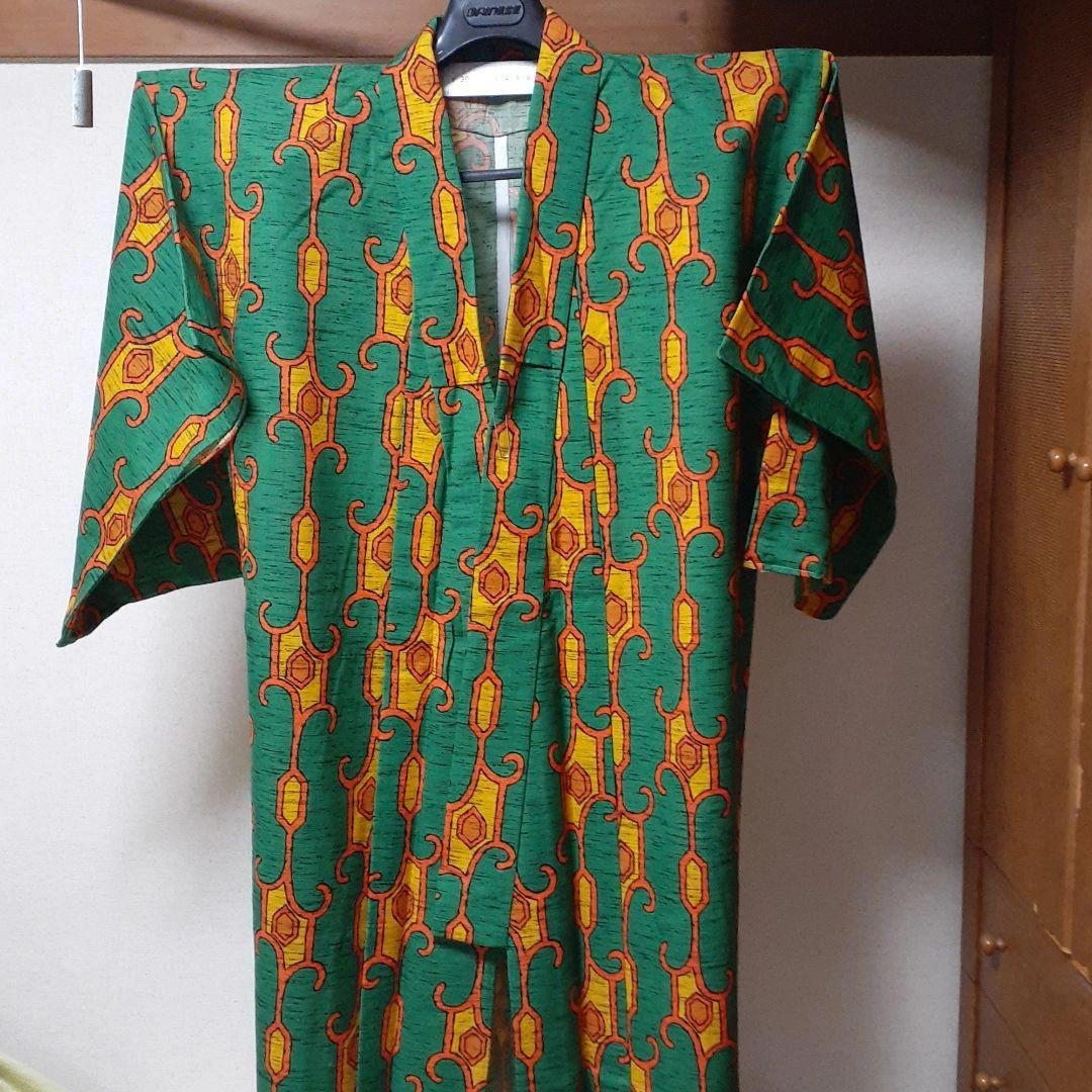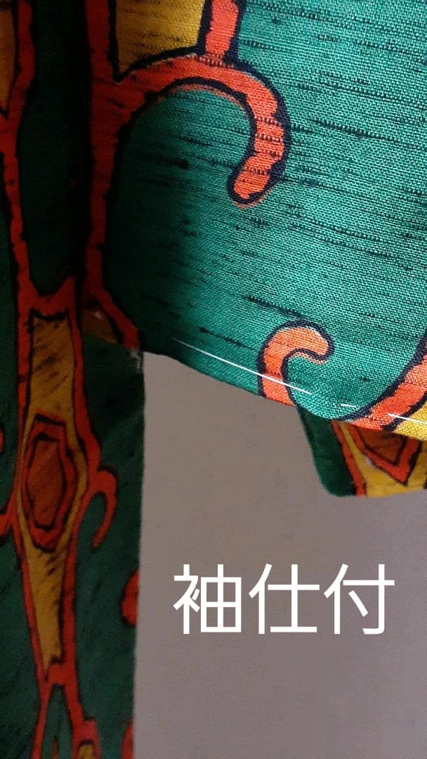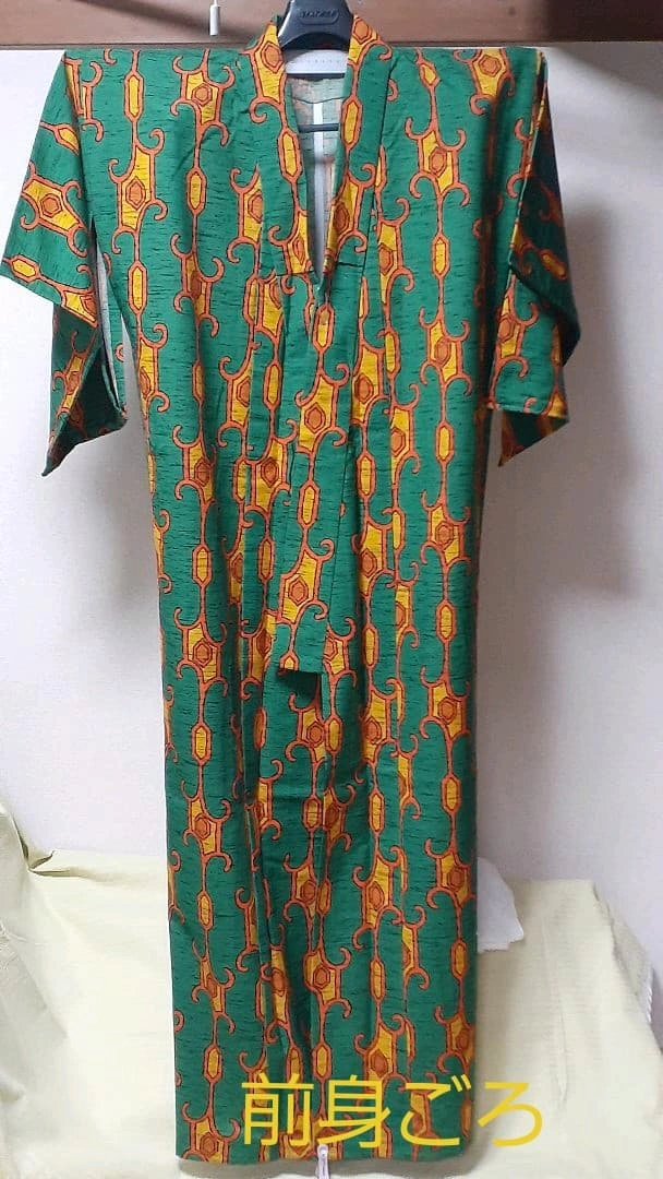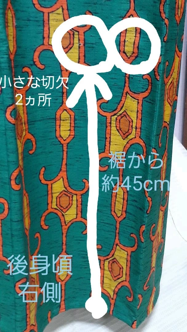 後身頃の右下に小さな切欠き(穴?)が2ヵ所あります。目を凝らさないと見えませんが、解して仕立て直しやクッションや小物などの生地に再利用されては如何でしょうか? 以前に購入したままで室内で袖を通したのみで仕付糸も残っています。 よく晴れた秋空の日差しの中、艶やかなこの一重でお出掛けしてはいかがでしょうか 素材 ウール(一重) 毛100% 身丈 155cm 身幅 30cm(肩幅60cm) 裄(ゆき)63cm 袖幅33cm 袖丈49cm 切欠き? 一つは5×3ミリ位のかぎ裂きと直径2ミリ位の穴があります。 ※写真参照して下さい。 ただウールの為か透かしてみないと気がつき難い感じです。 ご希望の方はお気軽にご連絡ください。