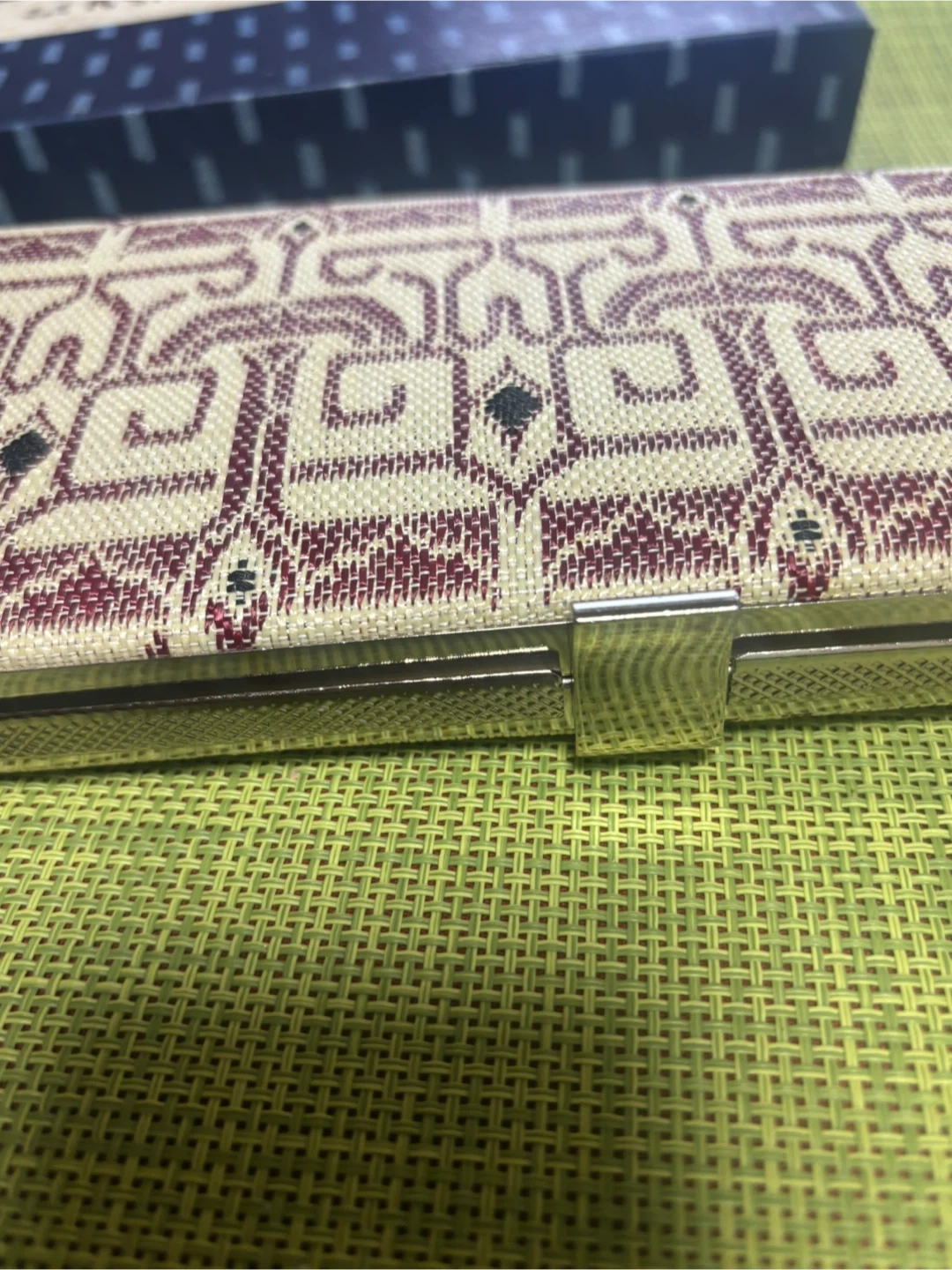 未使用のアイヌ民芸のがま口です。 北海道のお土産で購入したものです。 未使用のままタンスに保管してありました。 レトロ感たっぷりのバッグです。 ・デザイン:アイヌ文様蝦夷織 ・横:23cm ・縦:11cm ・厚み:2.5cm 仕舞いっぱなしのため、箱は少し汚れがあります。ご了承くださいませ。 よろしくお願いします🙇‍♀️