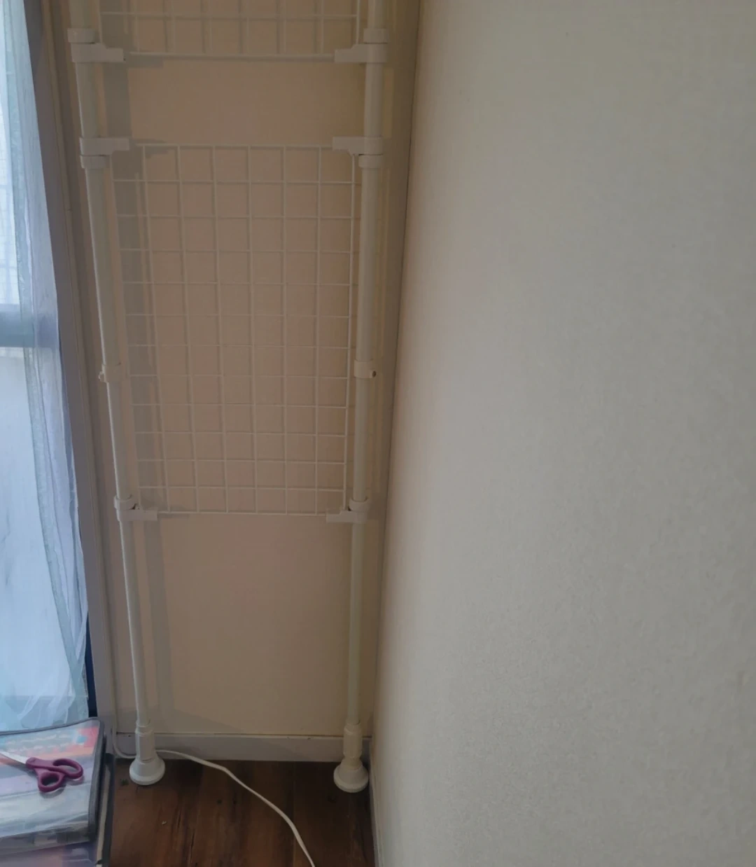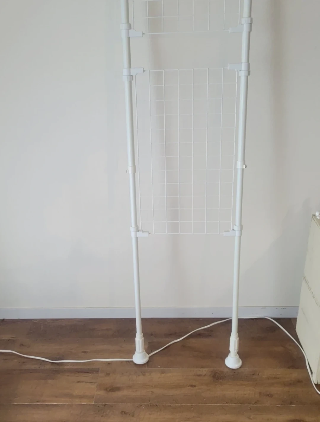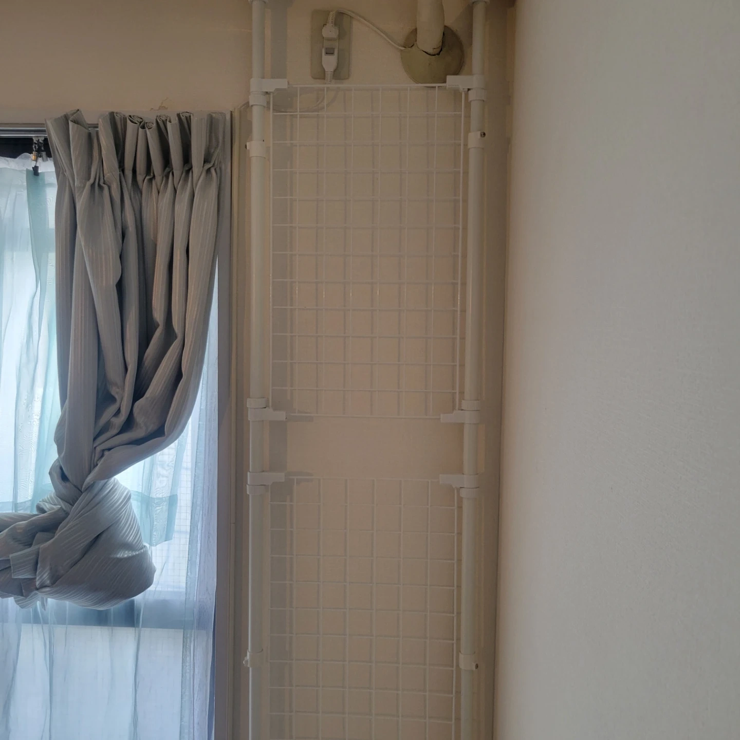 突っ張りラックです。 ・色:白 ・状態:使用感あり 画像にてご確認ください。 規定サイズより長くして止めていた事があり、ネジ穴が空いてしまっている箇所がありますが使用上は問題なかったです。 ●サイズ(約) 幅42×奥行7×高さ200〜270(cm) ●主要材質 ポリプロピレン、ABS樹脂、塩ビ被覆鋼管、スチールワイヤー ●耐荷重(kg) パネル1ヶ当り:約10kg フック1ヶ当り:約1kg