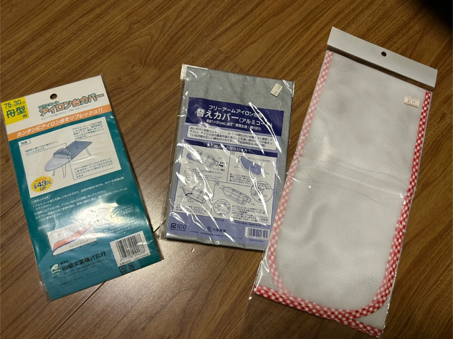 アイロン台カバーのセット 【情報】 種類:アイロン台カバー サイズ: ・舟型 75×30cm ・フリーアーム 約81×31cm 素材:表面生地 綿100% 種類:あて布 サイズ: ・67×47cm 素材:メッシュ アイロン用メッシュ布】アイロンがけする時に衣類などは柔らかく仕上げたり、テカリが出ないようにしたりする時 に使われる当て布。大切な衣類を傷めずに仕上げることができます。 【高品質】そのアイロン用あて布はメッシュで作られています、耐熱がありし、均一な放熱もあります。寿命が長くなります。 【状態】 新品未使用 中古品であることご了承ください