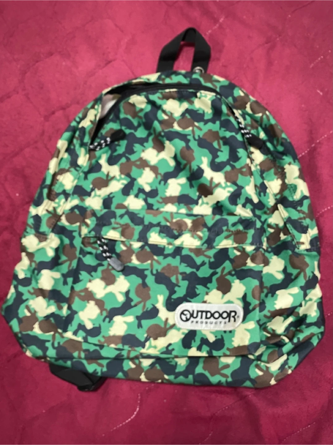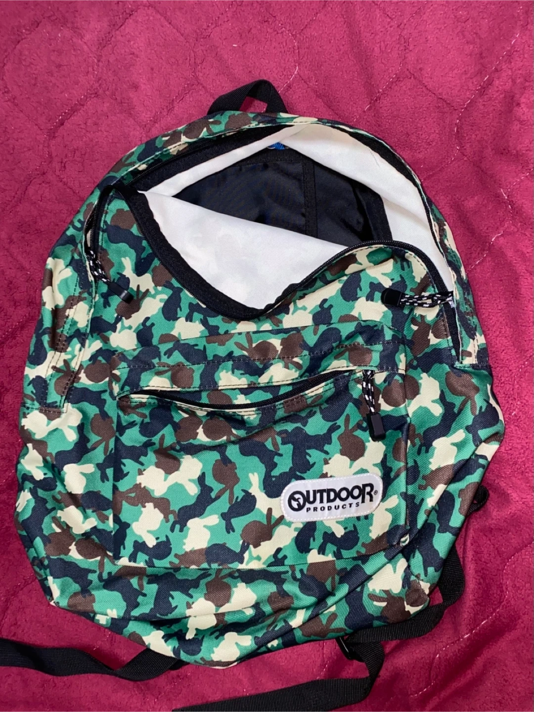 アウトドアプロダクツのリュックです。 ・ブランド:アウトドアプロダクツ ・色:緑、茶色、ベージュなどのカモフラ柄 幅30cm 高さ40cm 奥行15cm 軽量です 足立区指定場所での手渡しお引き渡しとなりますので、よろしくお願い致します