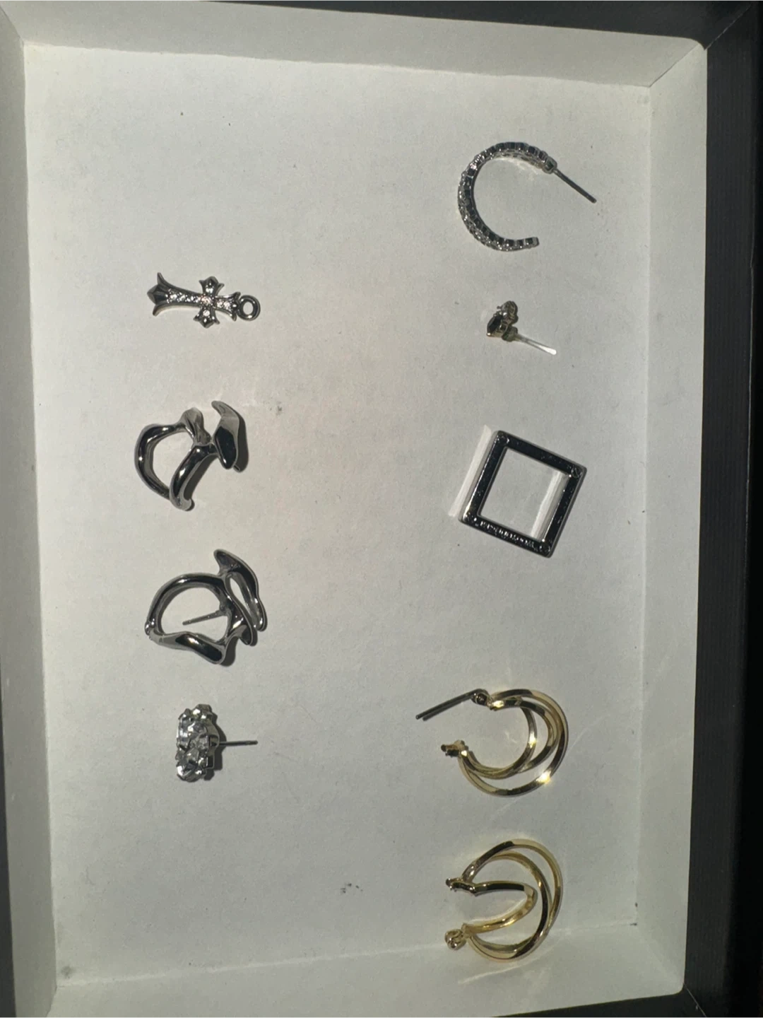 アクセサリー詰め合わせです。 ブレスレットと2枚目のしたので3つは購入価格は忘れてしまいましたが少し値段を張ったものでした。詳しいブランド名などは分かりませんが古着屋やセレクトショップで購入したものです。 ピアスのキャッチがありません。なおピアスの方消毒除菌済みです。 ブレスレットの方購入価格が28000円くらいでしたがかなり使用して裏面が錆びてしまっています。 中古というもののご理解ある方のみでお願いします。 今日明日で売れなかったら買取業者に出す予定です。お願いします。 ・シルバー、ゴールドカラー ・複数デザイン ・ピアス、チャームなど 中古品であることをご了承ください。
