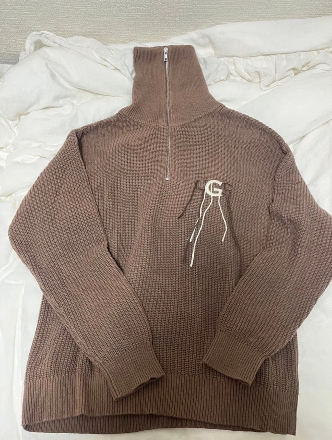 ニットトップスニットセーター ホワイト フワフワニット 長袖 ボタン付き