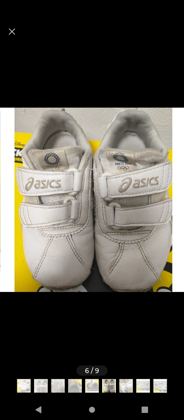 アシックスの白いキッズスニーカー16.5cmです。 半年ほど上履きとして室内ばきしておりました。 そこまで汚れは見られないかと思いますが、踵や履き口に使用感はあります。 マジックテープはまだまだしっかり使えます。 ASICSのホワイトスニーカー、ベルクロストラップで着脱簡単。 - ブランド: ASICS - 色: ホワイト - スタイル: スニーカー - 特徴: ベルクロストラップ - ソールのデザイン: ハニカムパターン - バックスタイル: ループタブ付き -サイズ:16.5cm ※箱は捨ててしまいましたので、こちらの商品のみです 【情報】 ブランド:アシックス モデルナンバー:T144A032 サイズ:16.5cm 【状態】 使用感あり 小さなキズあり 中古品であることご了承ください