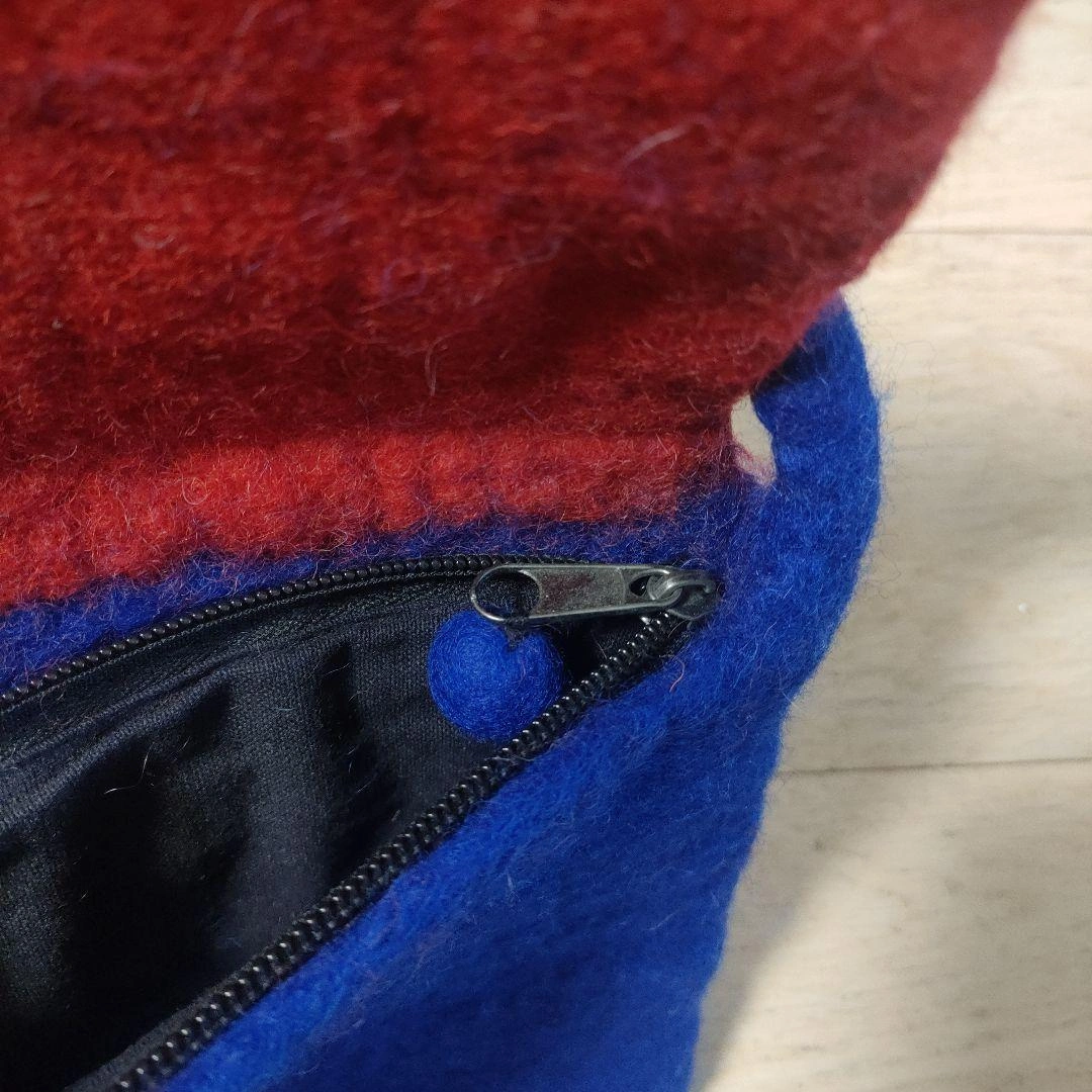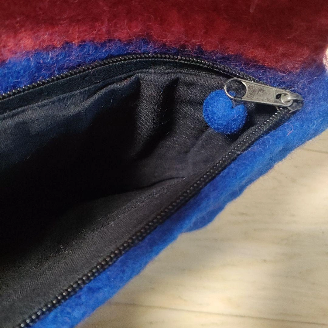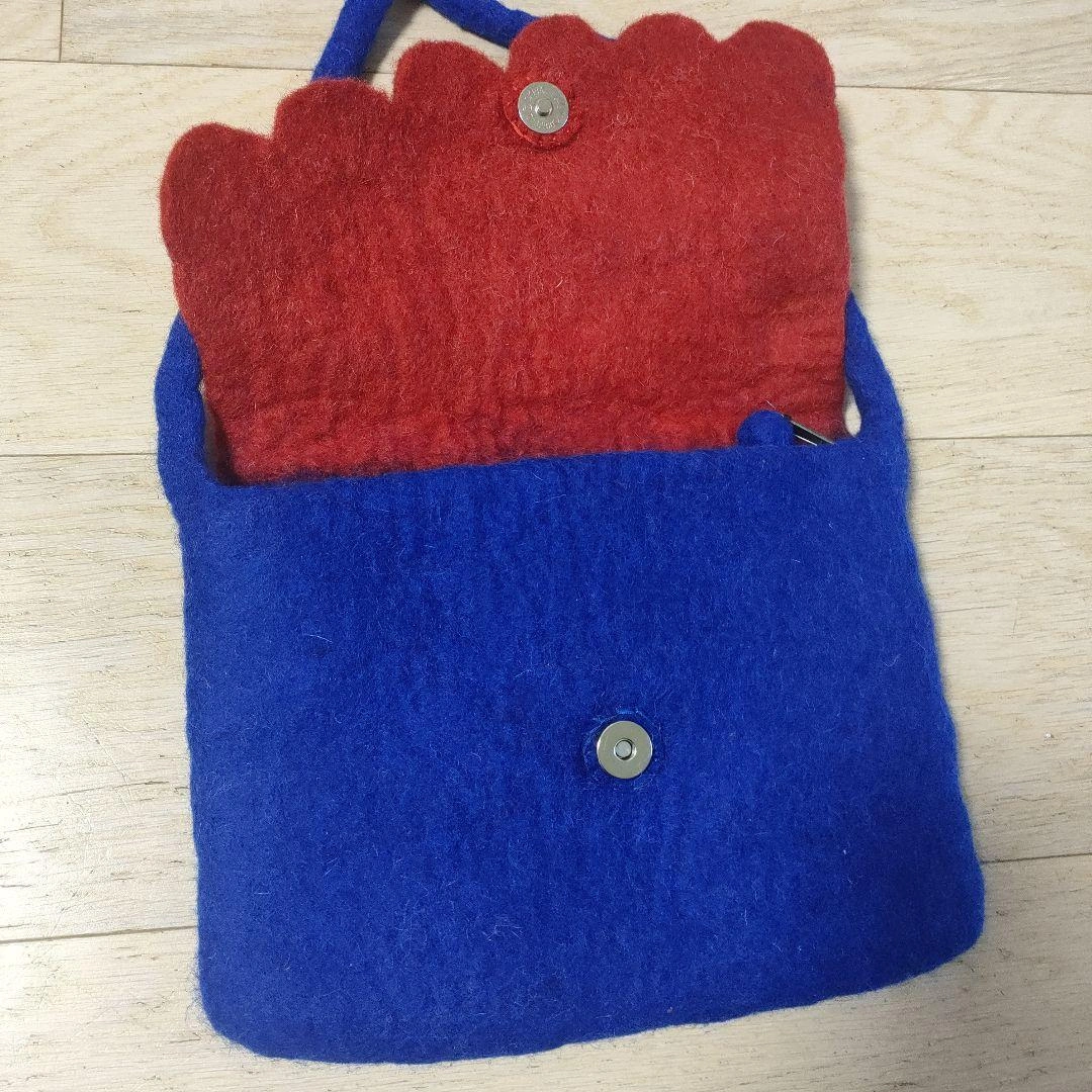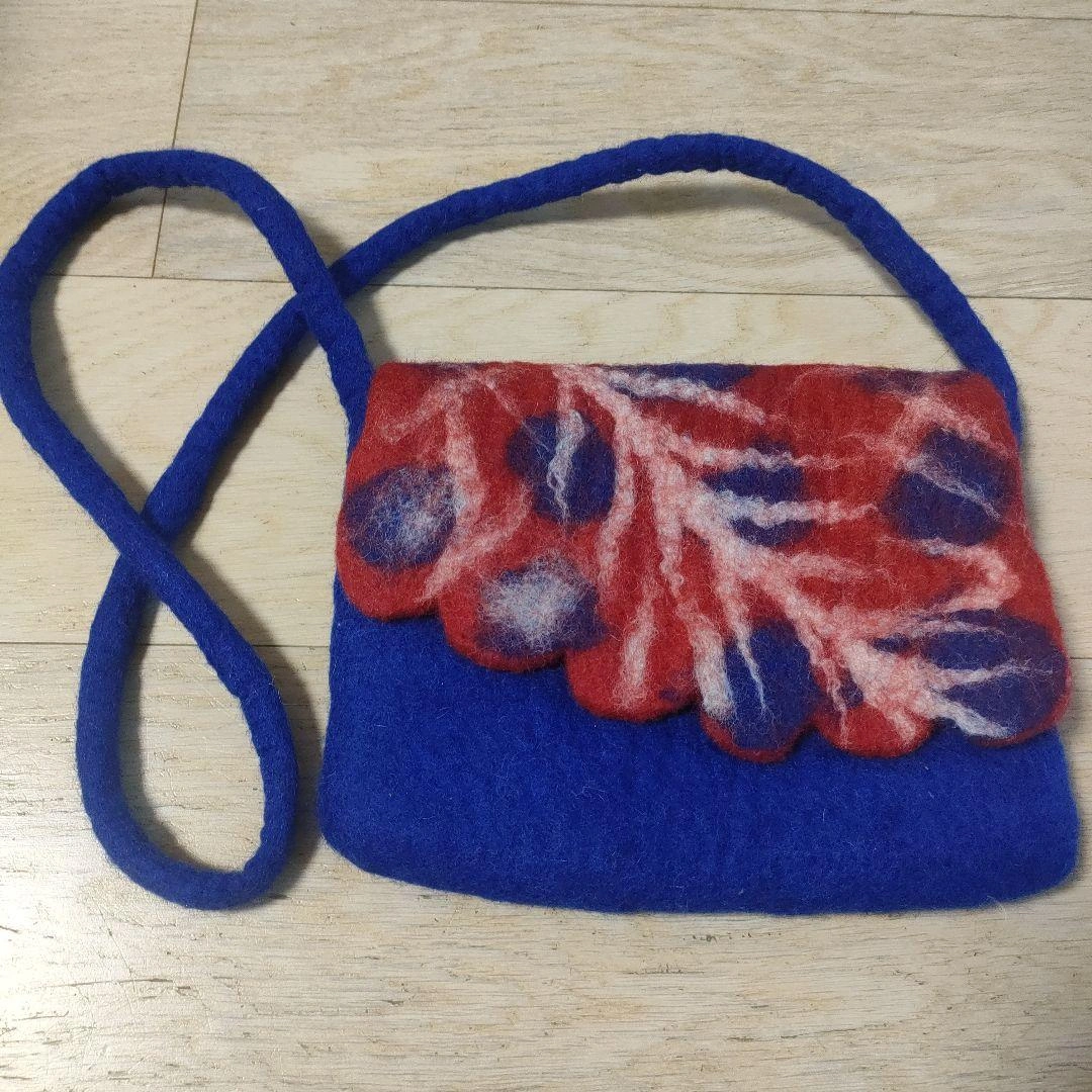 ご覧いただきありがとうございます。 ネパールの青と赤の羊毛フェルト製ポシェットで、葉の模様が特徴です。 - 色: 青と赤のフェルト - デザイン: 葉の模様が施されたデザイン - 素材: 羊毛フェルト製 - 留め具: スナップボタン付き 数年前にネパールで購入しましたが、使用せず自宅保管していました。 大きな汚れは見当たりません。 ステキなデザインで、明るい赤&青で挿し色にぴったりです。 横幅 25センチ 縦幅 19センチ 肩ひも 約110センチ ご希望の方はお気軽にご連絡ください。