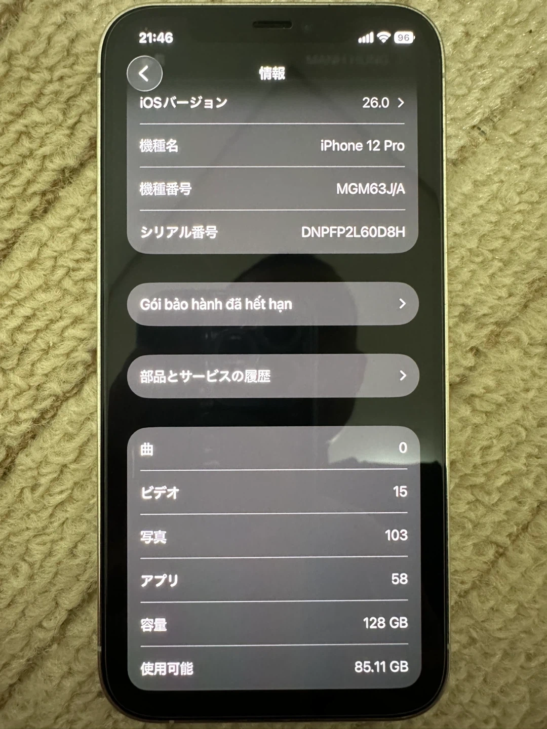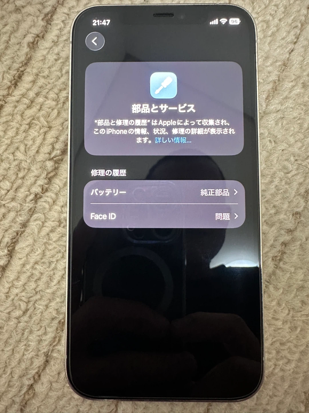 iPhone 12 Proです 【情報】 ブランド:アップル 機種名:iPhone 12 Pro 容量:128GB 型番:MGM63J/A トリプルカメラ搭載のホワイトiPhone 12 Pro、最大バッテリー容量89% 2024年にApple純正バッテリーを交換 - 最大容量: 89% - カメラ: トリプルカメラ - カラー: ホワイト iOS 26にアップデートしたらFace IDが機能しなくなったので、機種変更のために売りたいです ご覧いただきありがとうございます。 シリーズ···iPhone 機種名···iPhone 12 pro スマートフォン カラー···シルバー 容量···128GB 中古品であることご了承ください