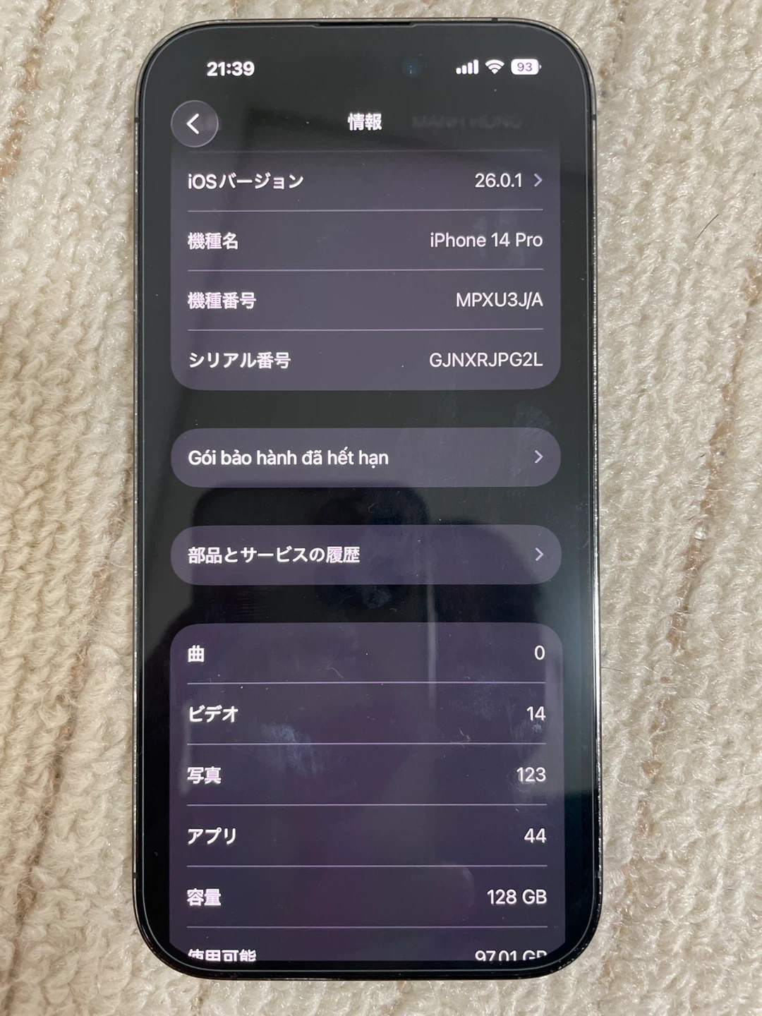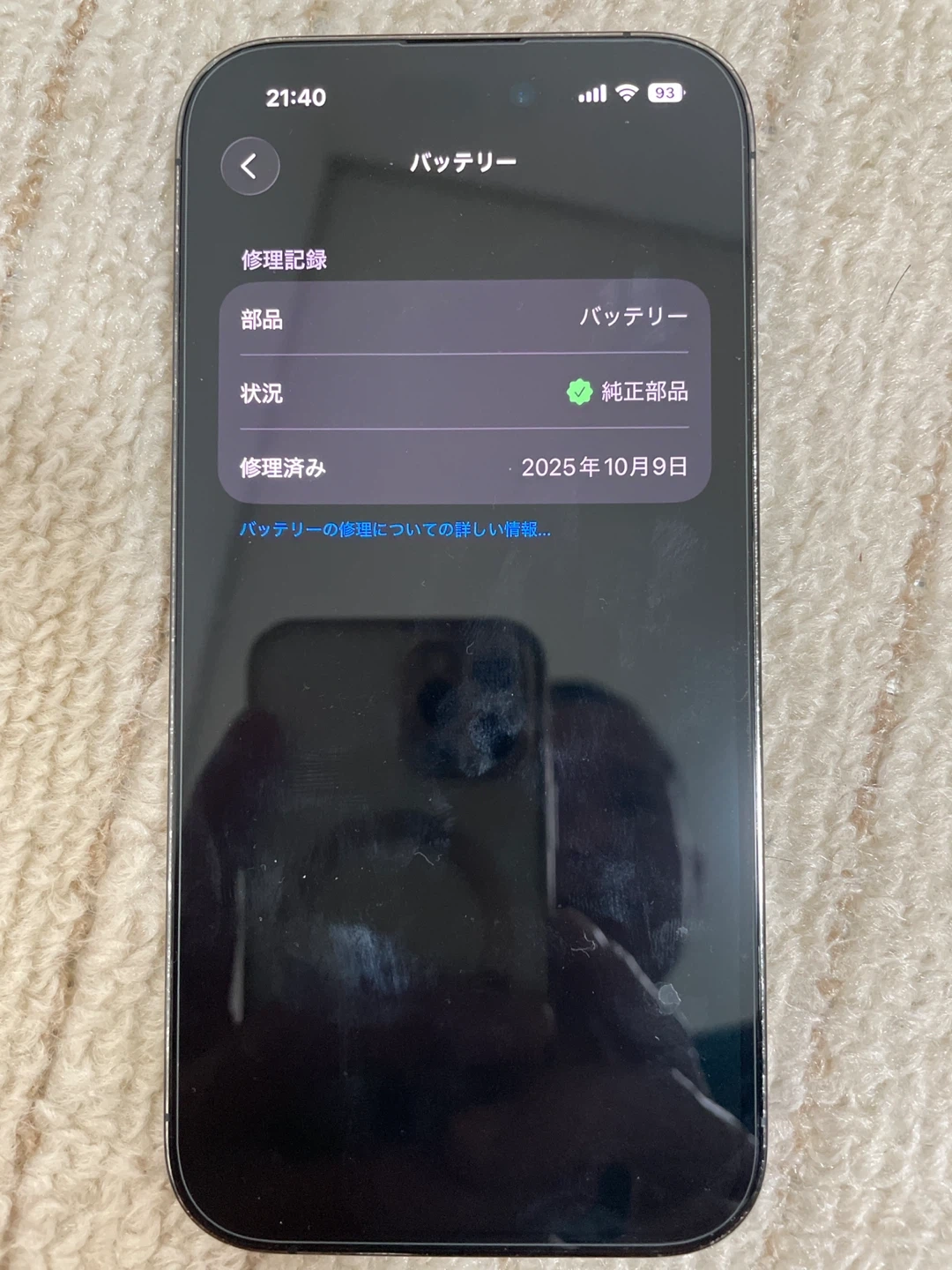 iPhone 14 Pro本体です 【情報】 機種名:iPhone 14 Pro 容量:128GB 型番:MPXU3J/A 128GBストレージのiPhone 14 Pro、バッテリー良好 - 機種名: iPhone 14 Pro - ストレージ容量: 128 GB - バッテリー状態: 良好 - 修理履歴: バッテリー交換済み ご覧いただきありがとうございます。 10月9日にApple Store純正バッテリー交換。 すべての機能は正常に動作します。 シリーズ···iPhone 機種名···iPhone 14 Pro スマートフォン カラー···スペースブラック 容量···128GB 【状態】 使用感はありますが、特に目立つ傷はありません。 バッテリーは純正部品で、修理済み 修理完了日:2025年10月9日 中古品であることご了承ください