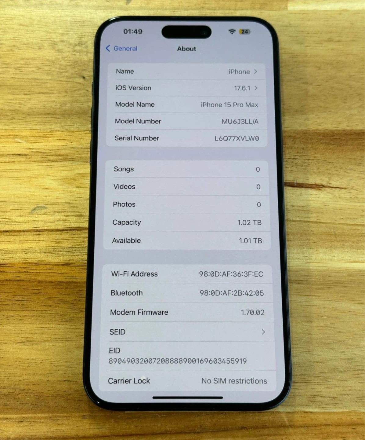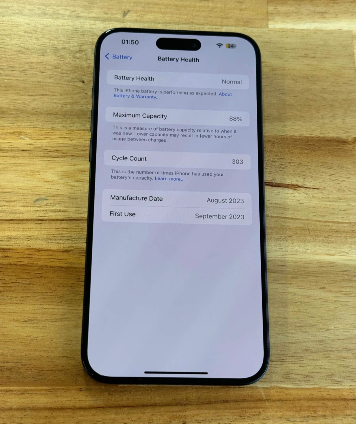 アップルのiPhone 15 Pro Maxです。 【情報】 ブランド:アップル モデル名:iPhone 15 Pro Max iOSバージョン:17.6.1 容量:1.02TB バッテリー最大容量:88% サイクルカウント:303 製造年月日:2023年8月 初回利用:2023年9月 【状態】 使用感はありますが、全体的にきれいです。 ご不明点があればお気軽にお尋ねください。