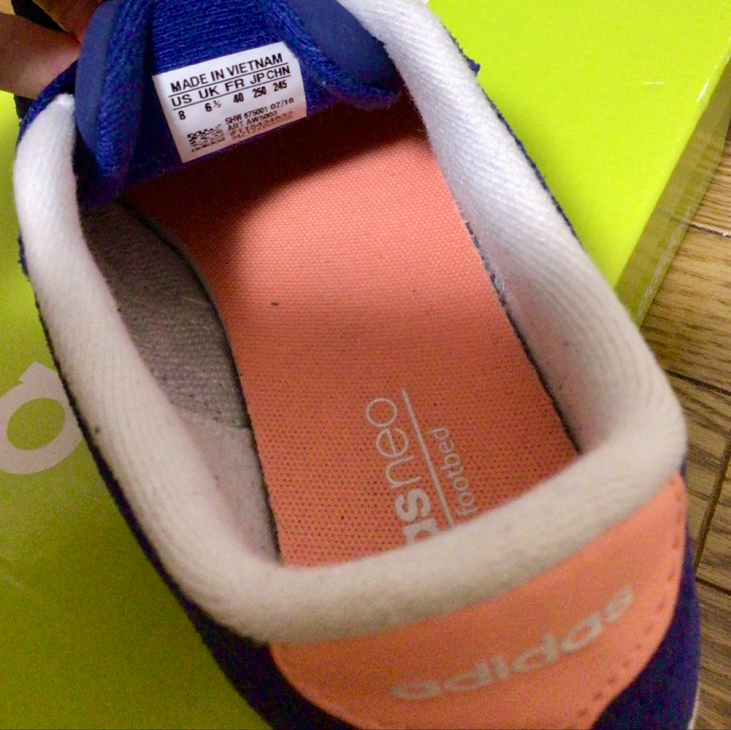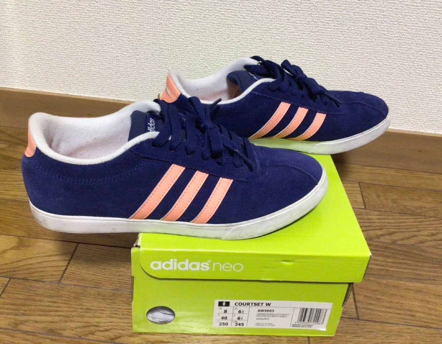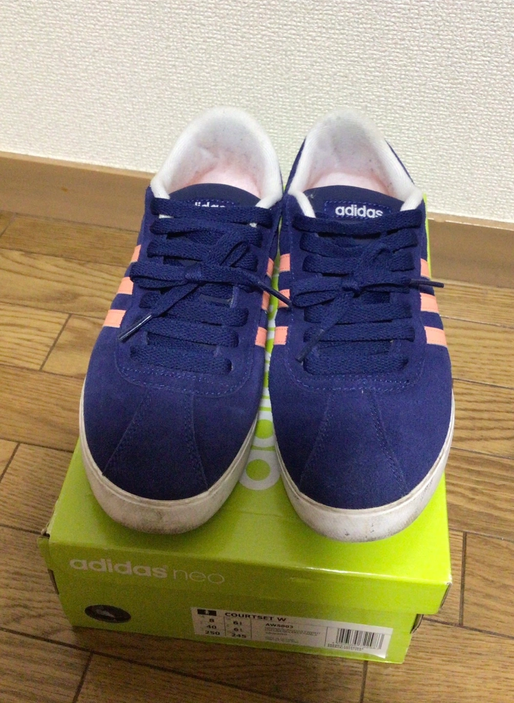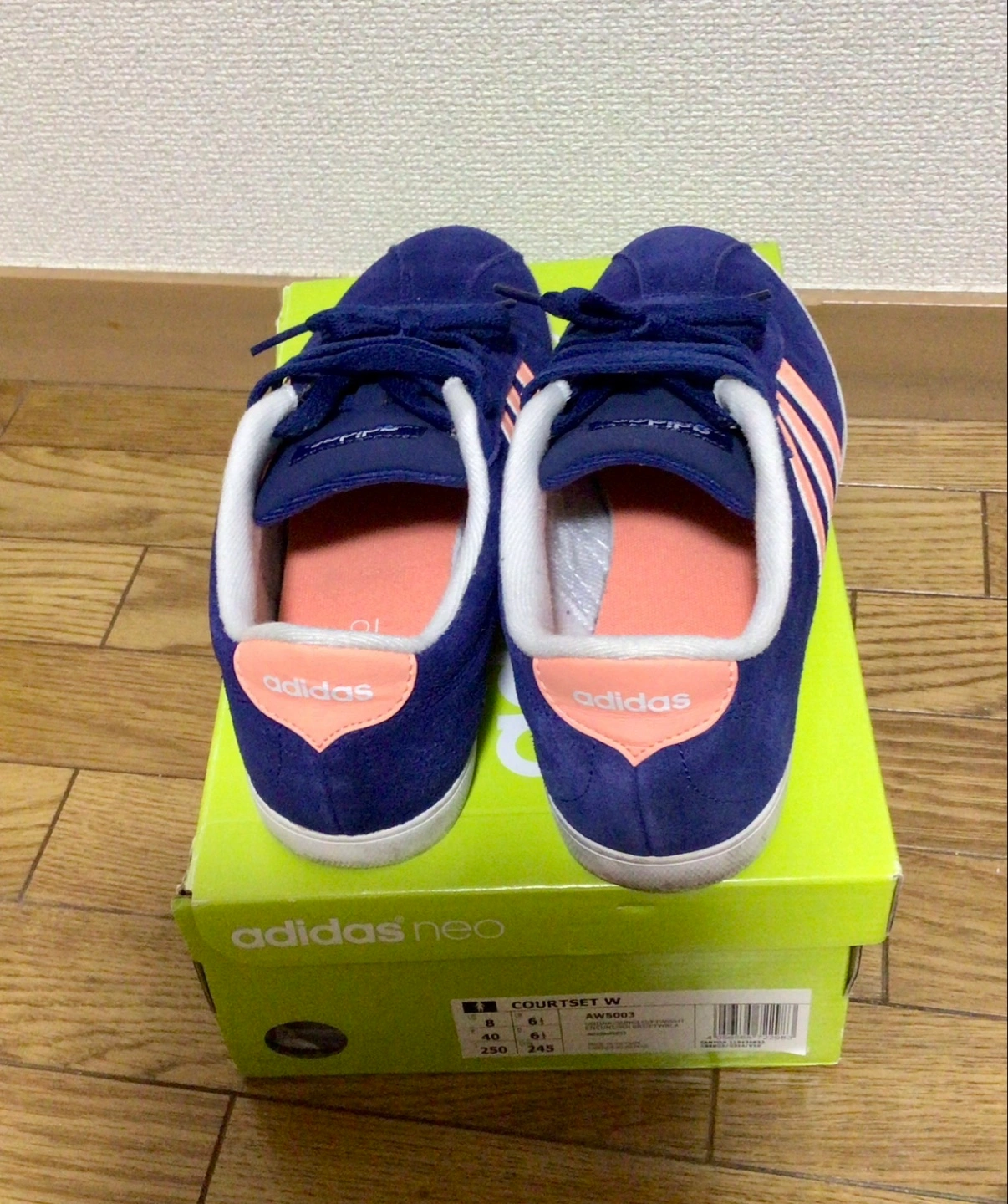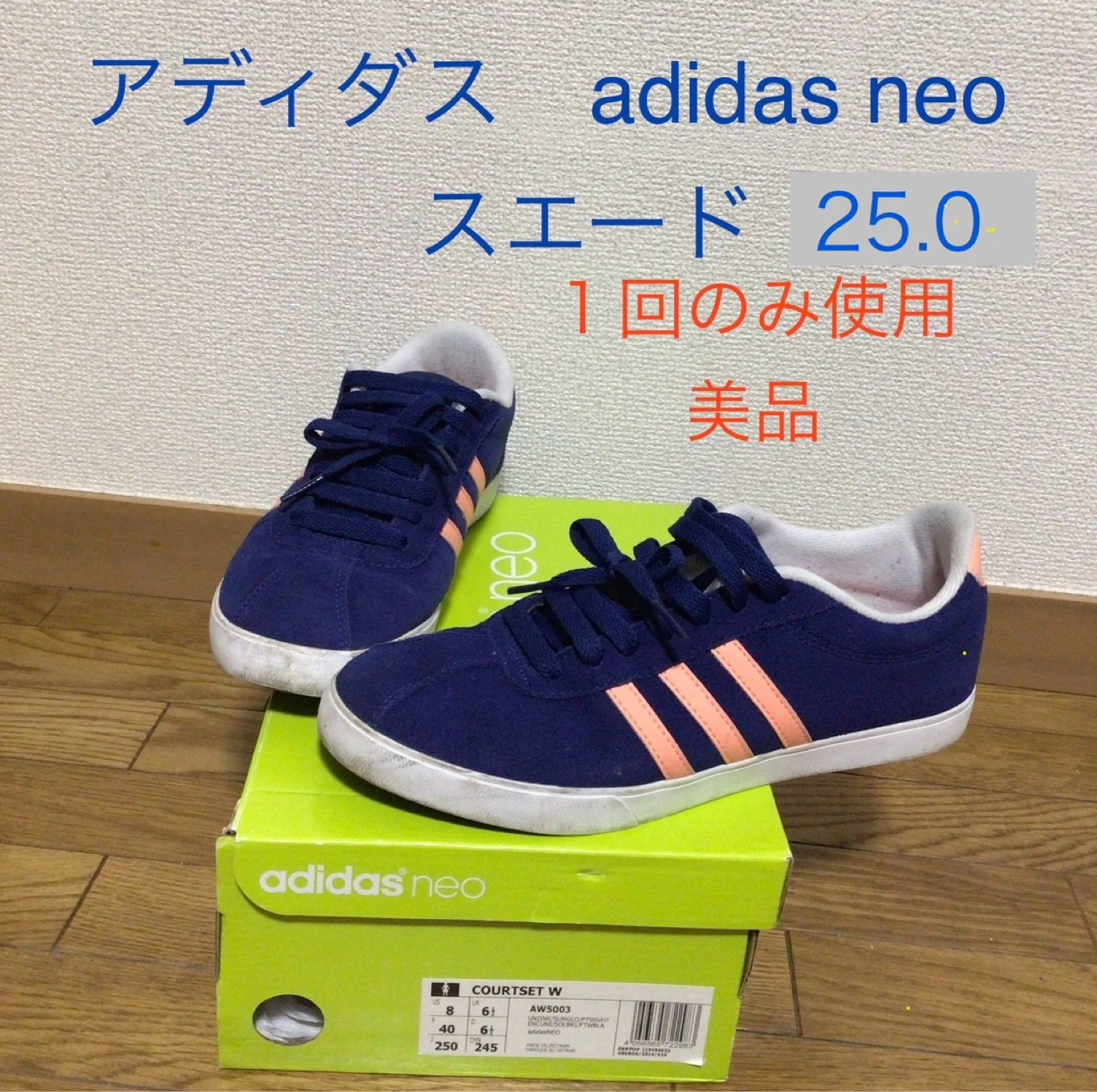 1回のみ使用の未使用に近いスニーカーです。 「adidas neo COURTSET W」(women's) サイズ25.0 / US8 品名 AW5003 カラー:ネイビー×ネオンピンク 、シューレース ネイビー 状態:画像にてご確認ください。 外側 使用感はあまり無し。ソールゴムサイドには若干汚れあり。 ソールすり減り無し。 内側 靴下のケバが若干あり。 画像の外箱お付けします。 お引き渡し場所 セブンイレブン桜上水一丁目店駐車場 (他、ご相談いただけます) #アディダスレディース #スタンスミス #アディダスネオ #アディダスネイビー #アディダス25