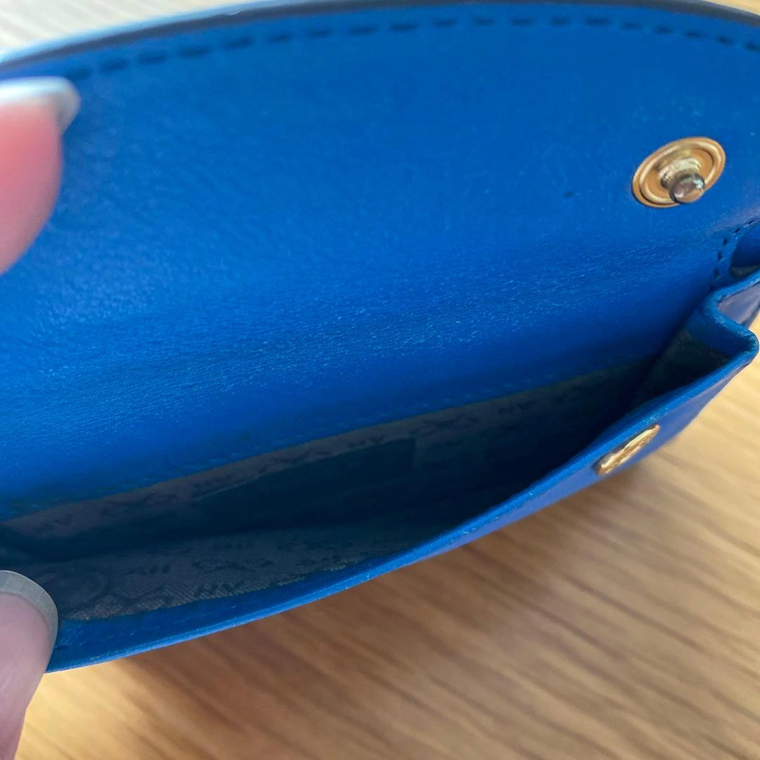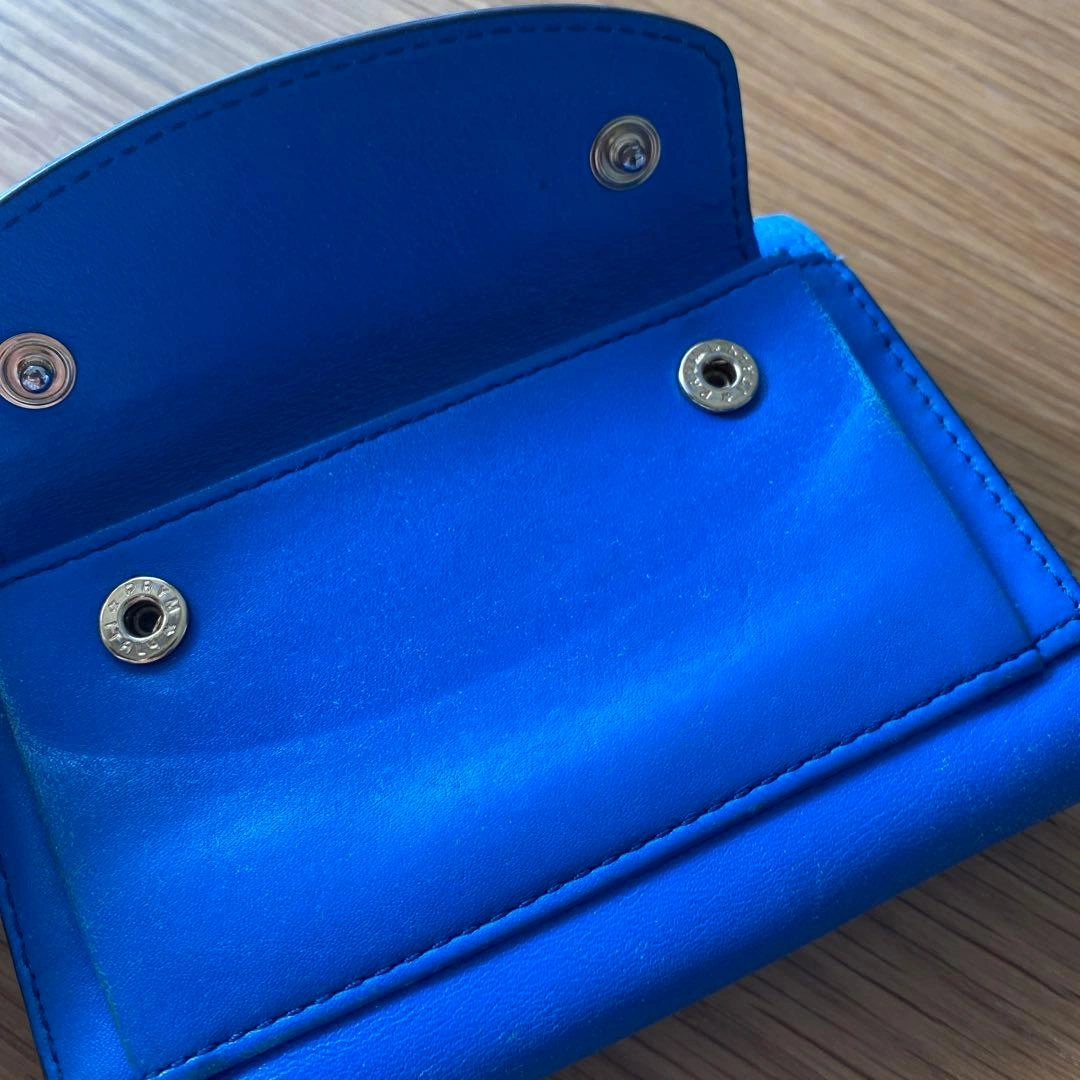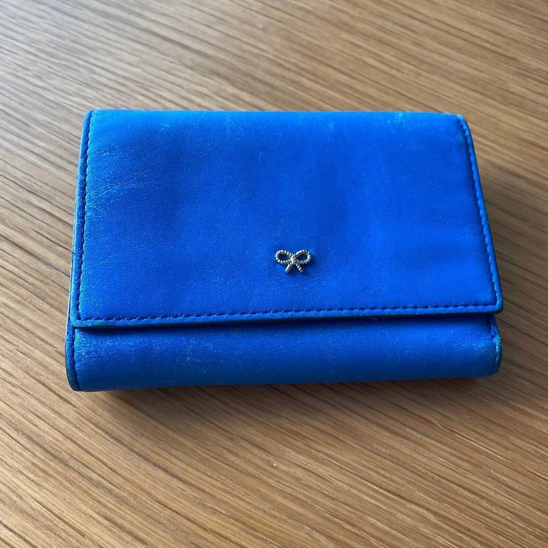 カラー···ブルー 素材···本革 折り畳んだ状態で約12×8.5×2cmになります。 2-3年くらい使用。 全体的に細かいスレ、キズ等使用感ありです。 #アニヤ #三つ折り ご希望の方はお気軽にご連絡ください。