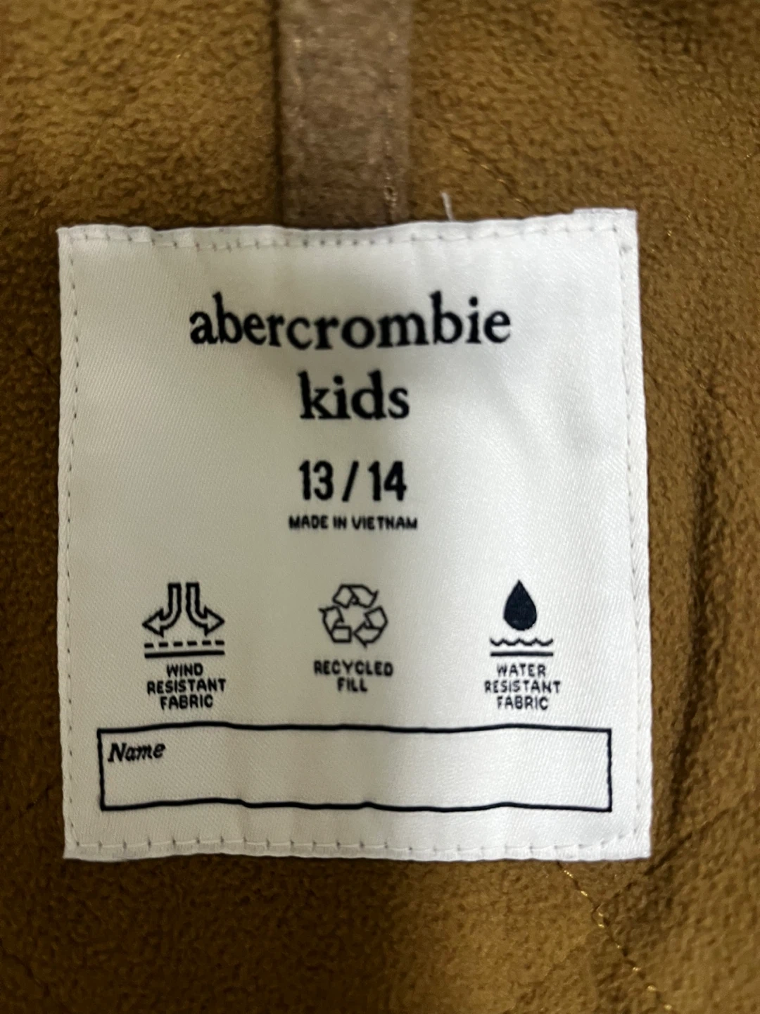 アバクロンビーキッズのジャケットです。 ・ブランド:アバクロンビーキッズ ・サイズ:13/14 ・素材:表示なし ・色:ブラウン ・状態:使用感はありますが、目立つ傷や汚れはありません ・その他:風に強く、リサイクル素材を使用、防水加工 中古品であることをご了承ください。