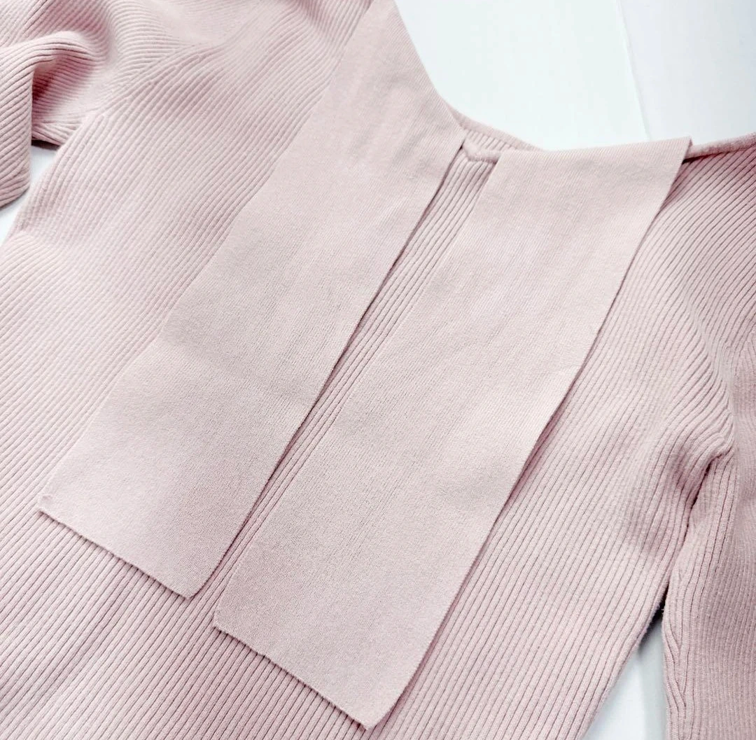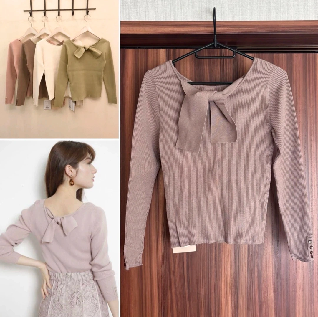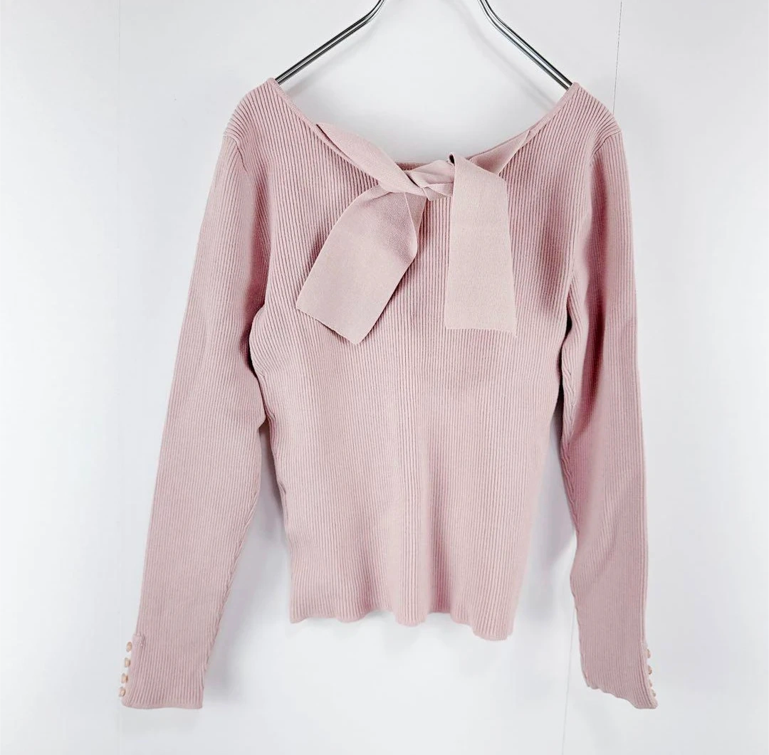 アプワイザーリッシェ  バックリボンニット バックシャンニット くすみピンク