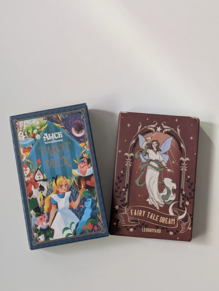 タロットカードデッキとルノルマンカードのセットです。 ・アリスワンダーランド タロットデッキ ・フェアリーテイルドリーム ルノルマンカード タロットカードは内容確認のため開封しています。 ルノルマンカードは未開封です。 いずれも未使用品です。 お取引は世田谷線松陰神社前駅付近。 平日は19時以降、週末は調整可能です。 よろしくお願いします。
