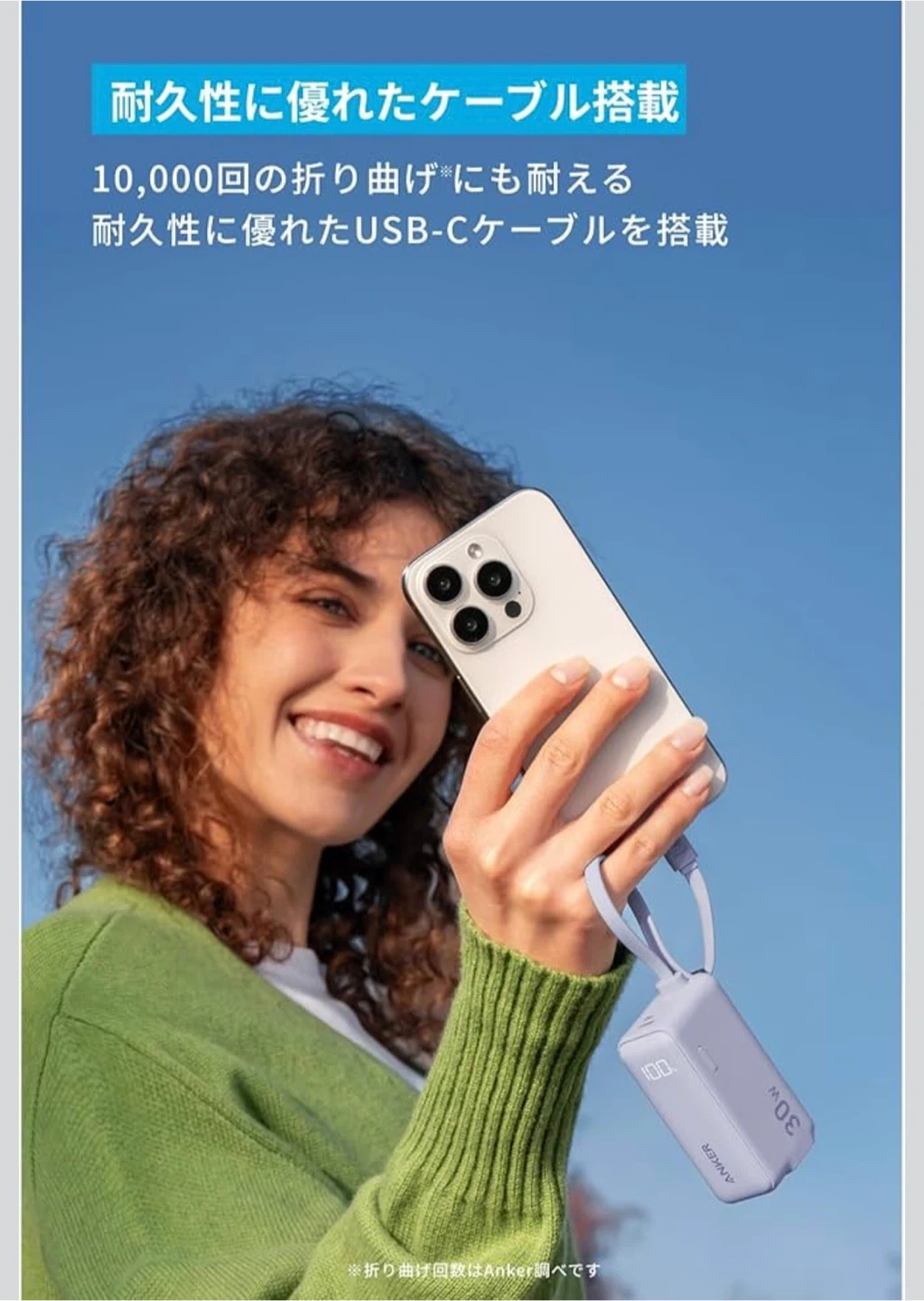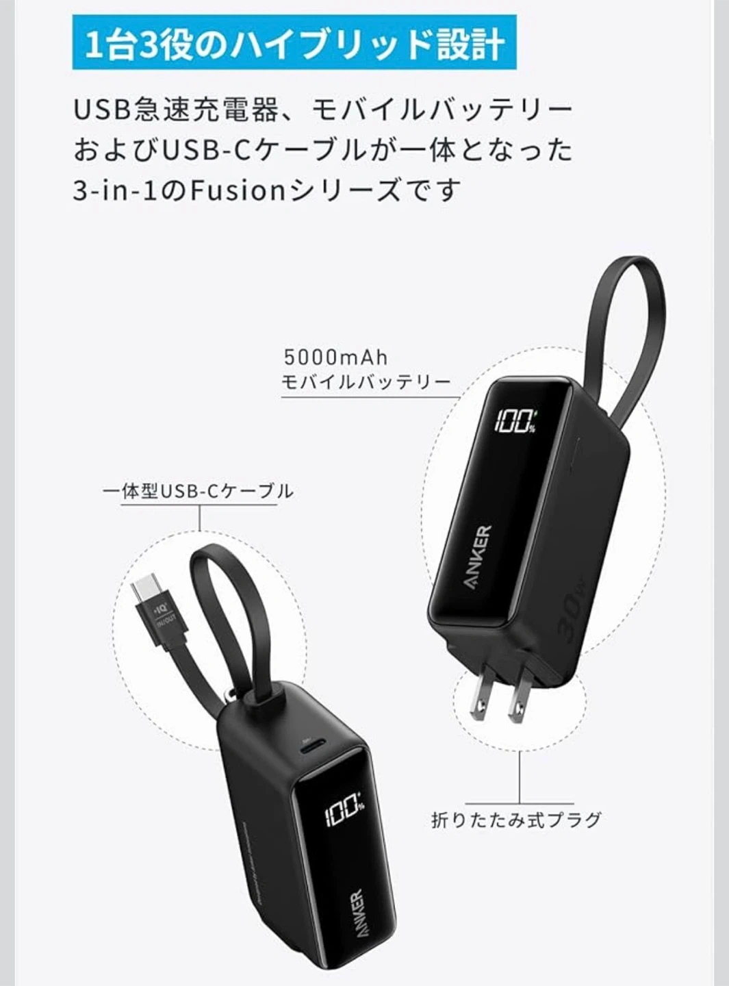 アンカーのモバイルバッテリー、USB急速充電器です。 6,000円くらいで購入しました。 ・ブランド:アンカー (ANKER) ・30W出力 ・USB-Cケーブル一体型 ・残量表示ディスプレイ付き ・状態:使用感少なめ【10回程度使用】 中古品であることをご了承ください。 多少の擦れ等はございます。