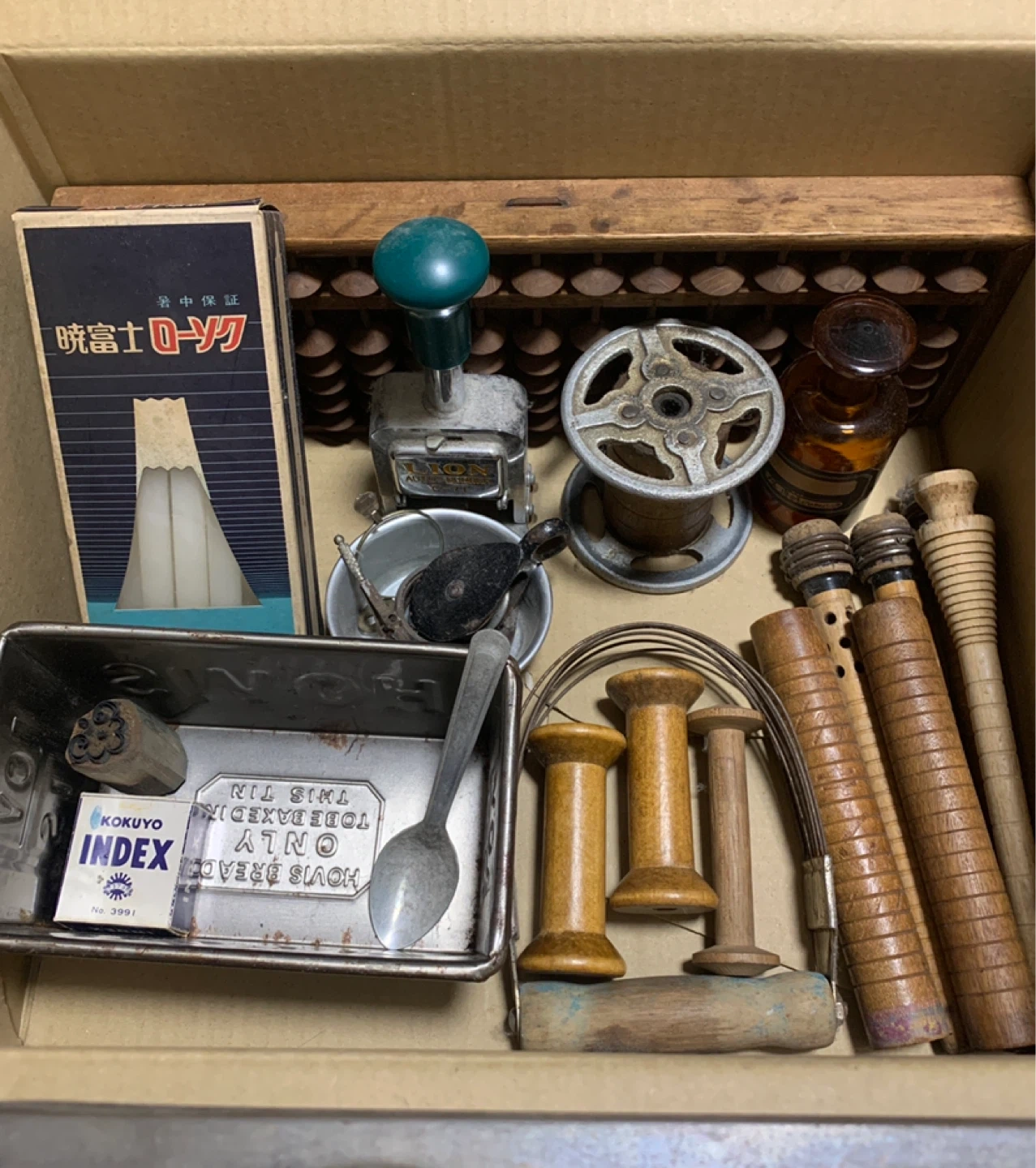 アンティーク 小物 古道具 まとめ売り 蚤の市等で大切に集めた小物たちですが、 模様替えに伴い、手放すことにしました。 古物の詳しい知識はなく、感覚で買い集めたものですので、それぞれの詳細や価値はわかりかねます。 書き込みや記名、黒板ボードの割れ、その他諸々のキズや経年劣化は購入当時からのものです。 アンティークならではの風合いですので、その点、ご理解ある方に。 特に洗浄等はせず、ホコリを被った状態です。 ダンボールに雑多なかたちで入れてお渡ししますので、ご了承ください。 バラでのお譲りは考えておりません。