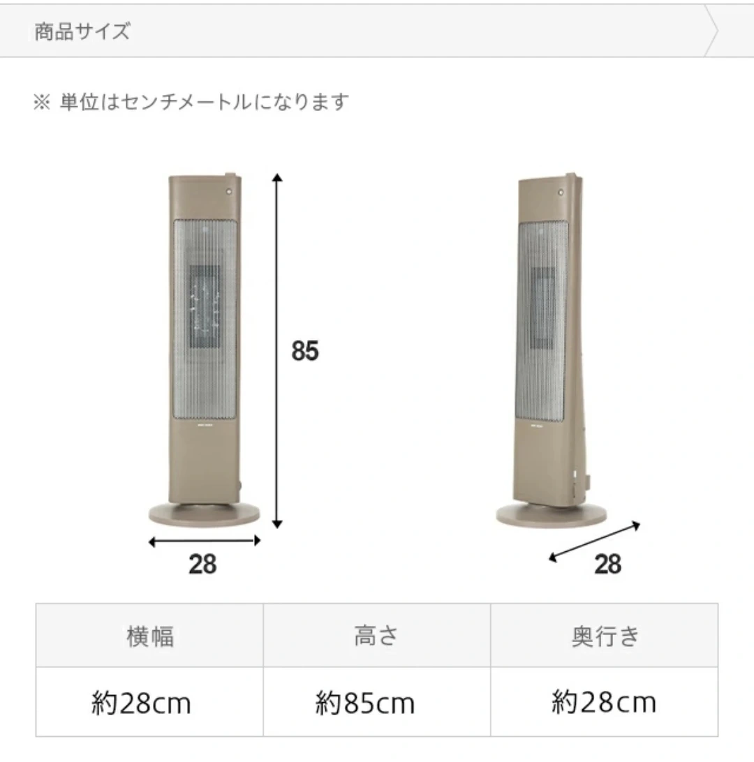 2025年2月にこのヒーターを購入し、2回ほど使用しました。 普段はエアコンを使用しているため、このヒーターは使わなくなりましたので出品いたします。 商品の詳細については、以下のリンクをご覧ください: ヒーター セラミックヒーター セラミックファンヒーター 加湿器 加湿機能付 人感… [楽天] https://item.rakuten.co.jp/dondon/lcht01/?scid=wi_ich_androidapp_item_share #Rakutenichiba アンドデコのセラミックファンヒーターです 【情報】 ブランド:アンドデコ 種類:セラミックファンヒーター(加湿機能付き) カラー:モカブラウン サイズ:約28cm x 28cm x 85cm 【状態】 使用感少なめ 中古品であることご了承ください