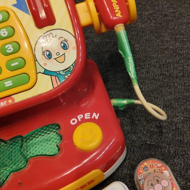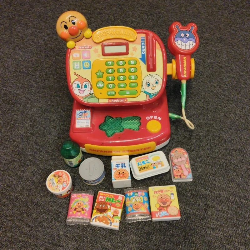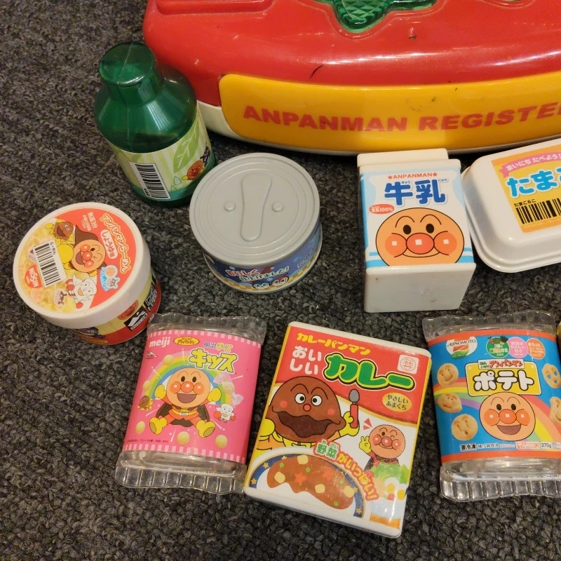 ★アンパンマンのレジスター★ 中古品です!!! ・アンパンマンレジスター ・付属品のおもちゃの食品など 付属の食材⇨10点 (お金は捨ててしまいました) 今ならおまけ付き!気になる方は連絡ください。画像をアップします! レジ⇨動作確認済み。コードが多少破損してしまい、テープで補強していますが音もなりますし、バーコードにも反応します(画像は緑ですが白に変更してありめす) 計算の練習・レジを通して買い物が楽しめます。 自宅保管になります。神経質な方はご遠慮ください。たばこ・ペット等の匂いはありません。