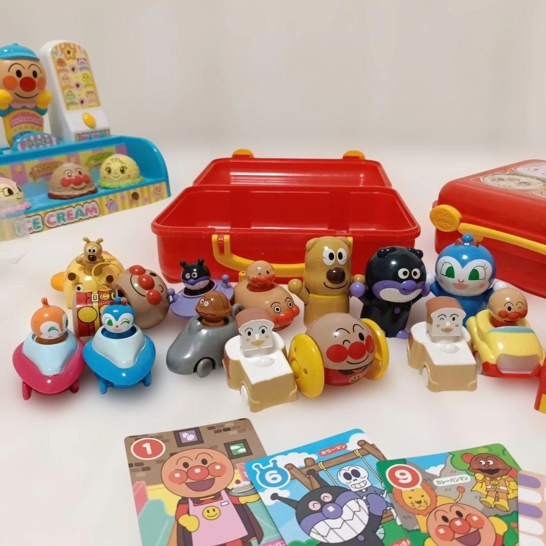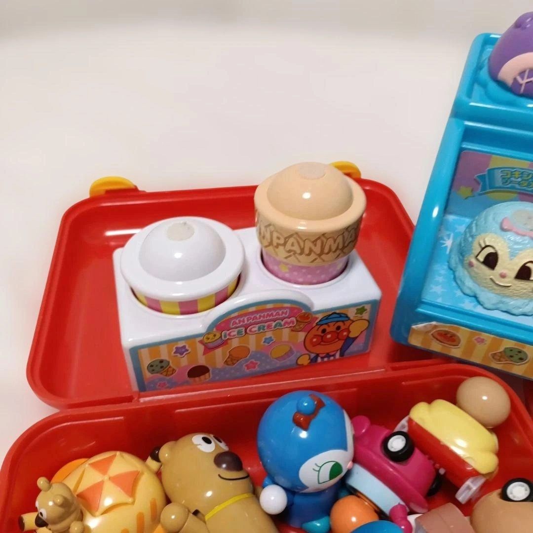 アンパンマンのキャラクターが揃ったおもちゃセットです。遊びながら学べるアイテムです。 子供達が年内卒業と叫んだので出品です。 完動品です。電池も全て入れたままお渡しします。 お誕生日のサプライなどにいかがですか(⁠^⁠^⁠) 専用の箱があったか怪しいので、まとめてダンボールに入れてお渡しします。 ガチャやゲームセンターでもらったものも色々セットです! 赤のカバンはアンパンマンミュージアムでそれぞれ姉妹で2つずつ買いました。 一つは殆んど使っていません。 ひとつにガチャのミニカーいれました。 アイスクリーム屋さんは透明のカバーありましたがうまく使えず破棄しています。ピザは緑のピザの出る蓋が一部欠けていたので外したまま使っています。 最近まで子供達の大好きなおもちゃでした。 よかったら沢山まだ遊んであげてください! - セット内容: アンパンマン関連のキャラクター玩具セット - 種類: 自動販売機、ピザ屋、アイスクリーム屋 - キャラクター: アンパンマン、バイキンマン、その他のキャラクター - 色: 赤、オレンジ、青、白 - 素材: プラスチック 1歳、2歳、3歳、4歳、5歳 プレゼント、保育、知育知育玩具 アンパンマンのアイスクリーム屋台セット、ピザ屋台付きで遊びが広がる! - セット内容: アンパンマンキャラクターのアイスクリーム屋台 - 特徴: ピザ屋台付き、アイスクリームディッシャーあり - 付属品: カード3枚、キャラクター人形多数 ご覧いただきありがとうございます。