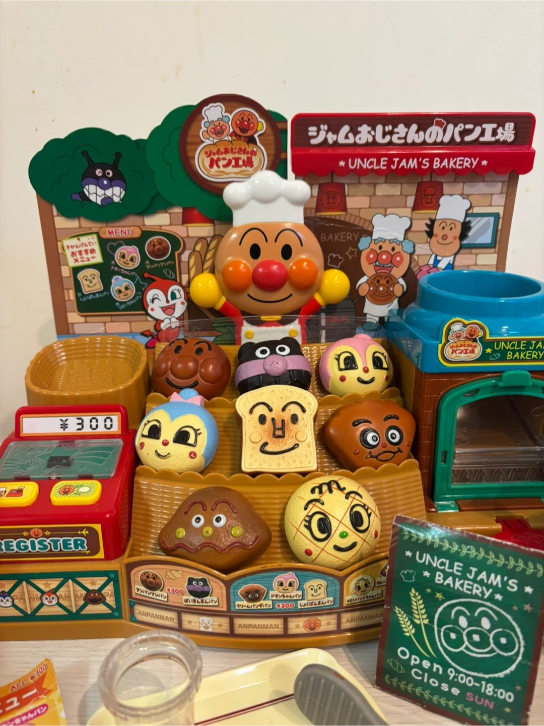 ご覧いただきありがとうございます。 子どもがたくさん遊んだおもちゃですが、まだ問題なくお使いいただけるため、ご縁のある方にお譲りいたします。 使用に伴うキズや塗装のハゲがございます。 「ジャムおじさんのパン工場」は動作確認済みで、音もきちんと鳴ります。 また、メニュー表・背景・看板に落書きや破れがあり、一部テープで補強している箇所がございます。 アンパンマンのぬいぐるみは、鼻部分に汚れがあります。 中古品にご理解いただける方のご購入をお待ちしております。