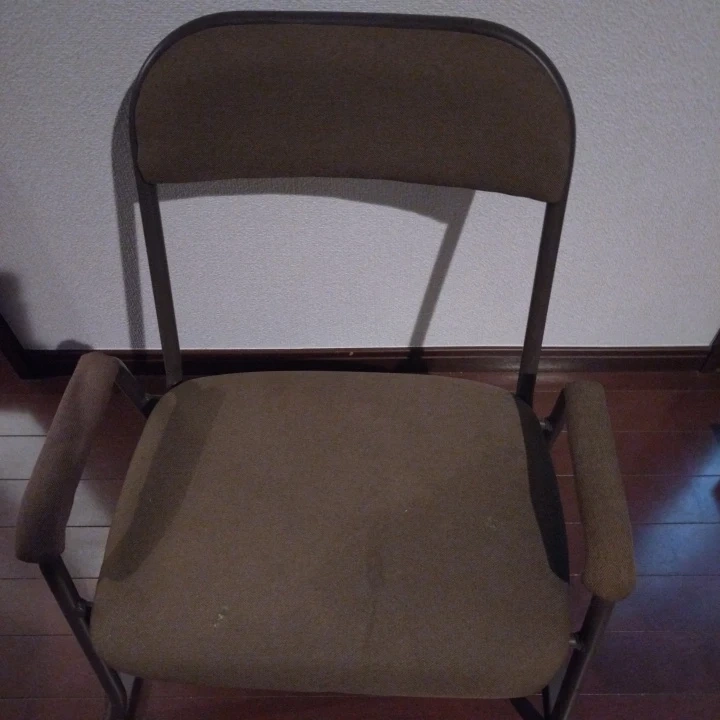アーム付きの椅子です。 ・色:茶色 ・使用感あり 中古品であることをご了承ください。